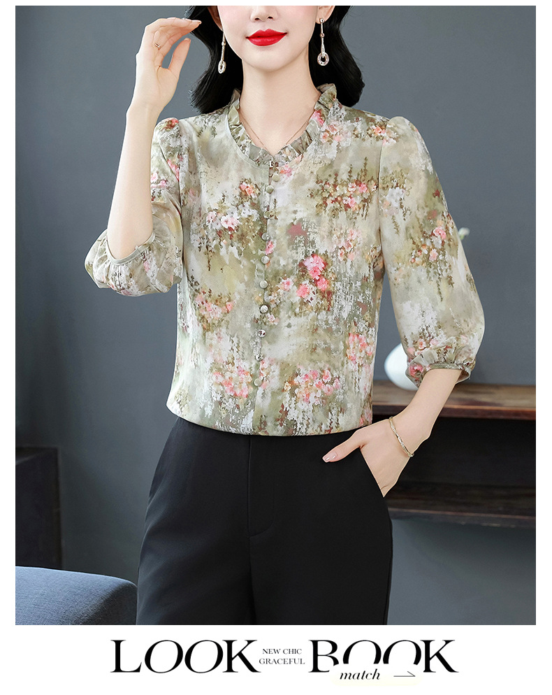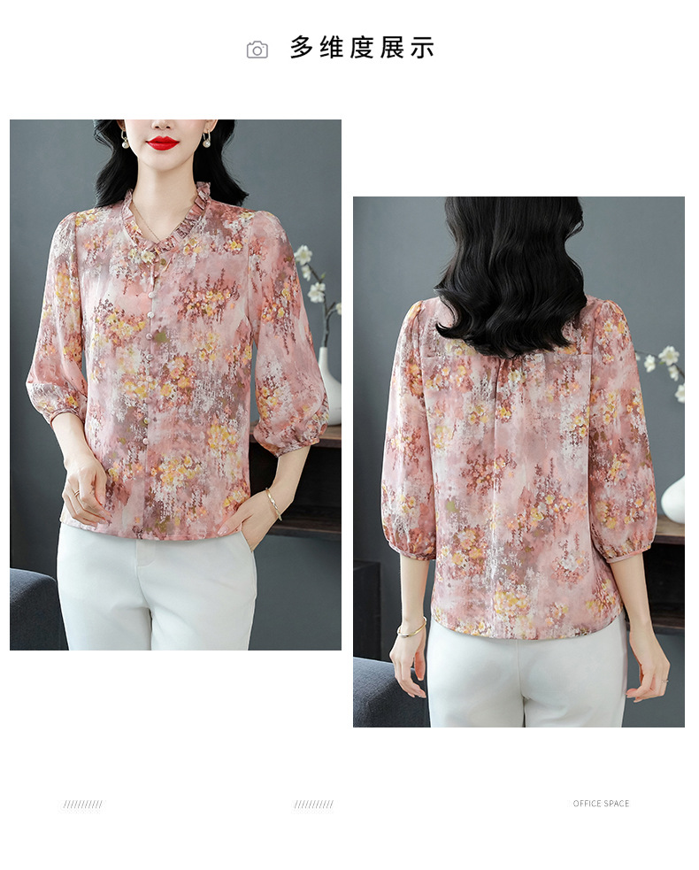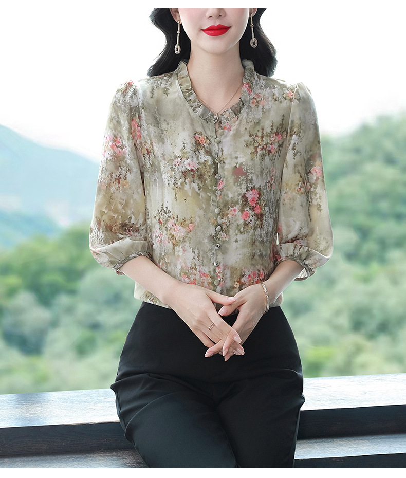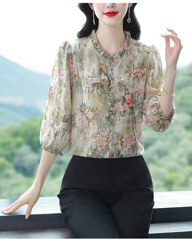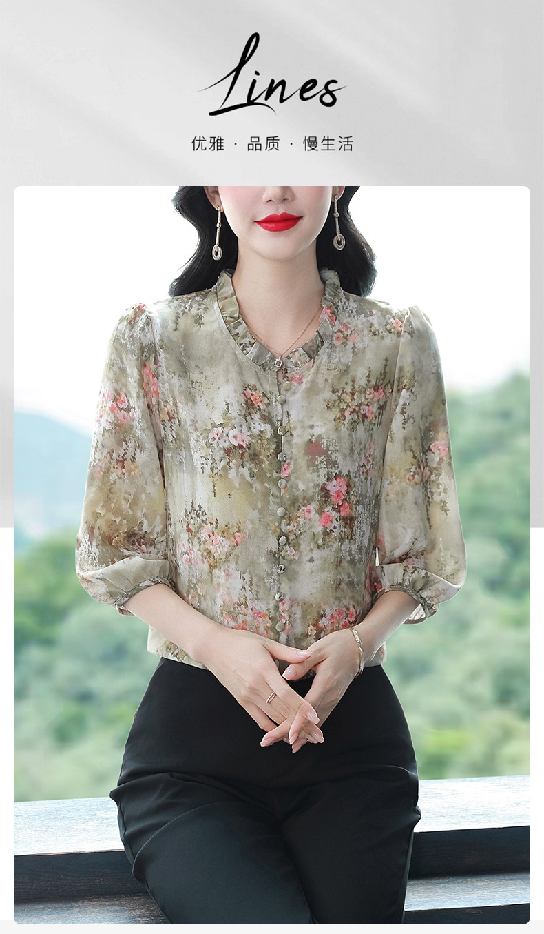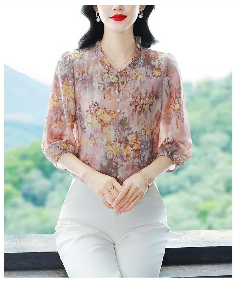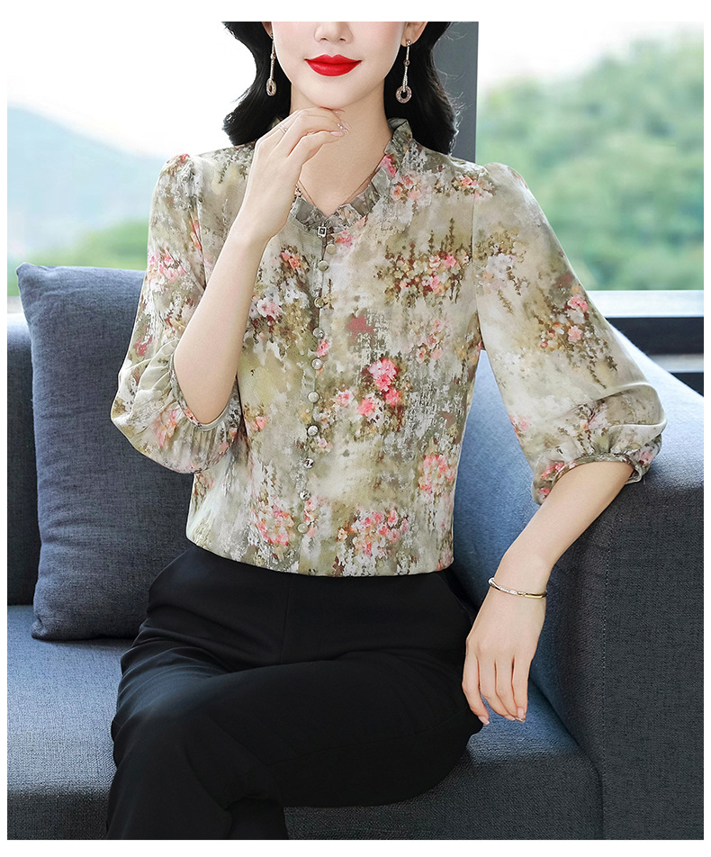 스팟 쉬폰 셔츠, 새로운 스타일, 복고풍 홍콩 스타일, 여성용 멀버리 실크 탑, 다용도 셔츠, 루즈하고 배를 덮습니다.스토어 가기