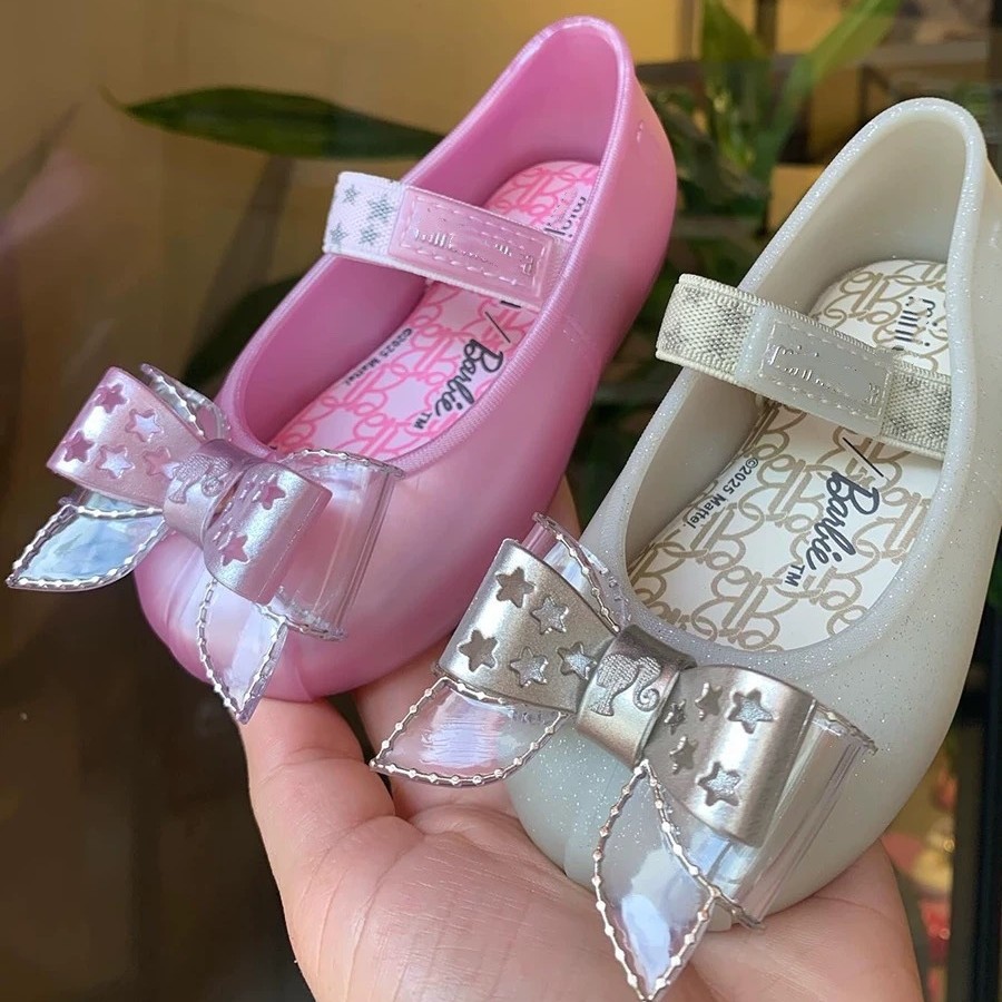 2025 새로운 Mei*sha 같은 스타일의 어린이 신발 탄성 밴드 스타 보우 소녀 공주 샌들