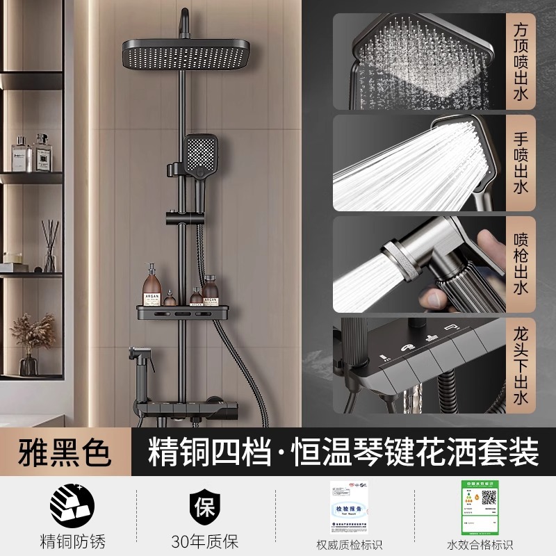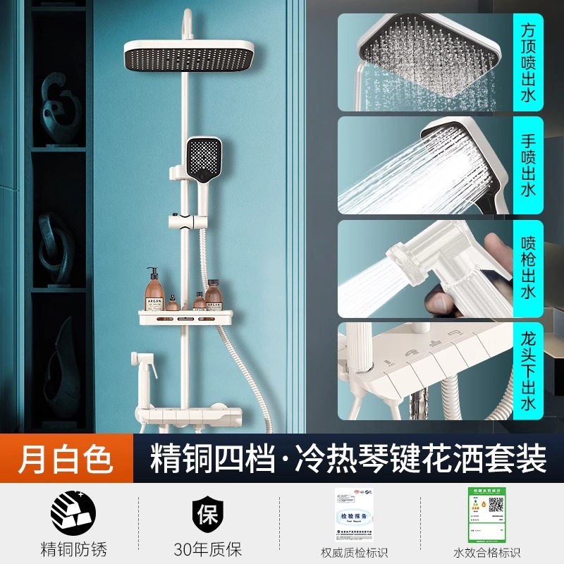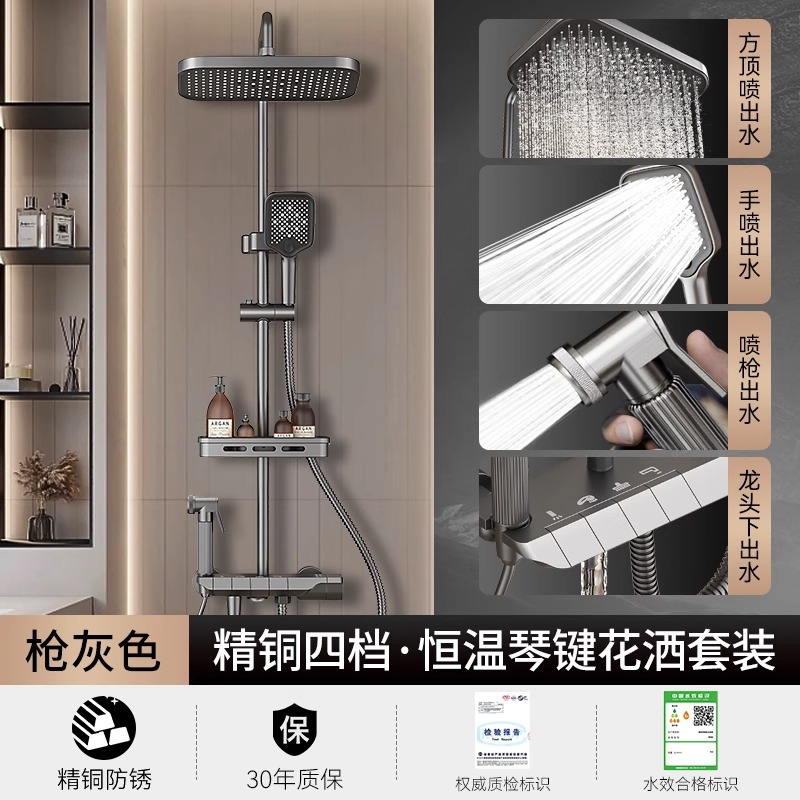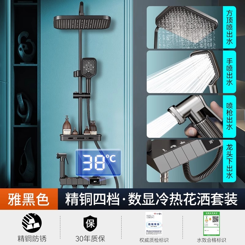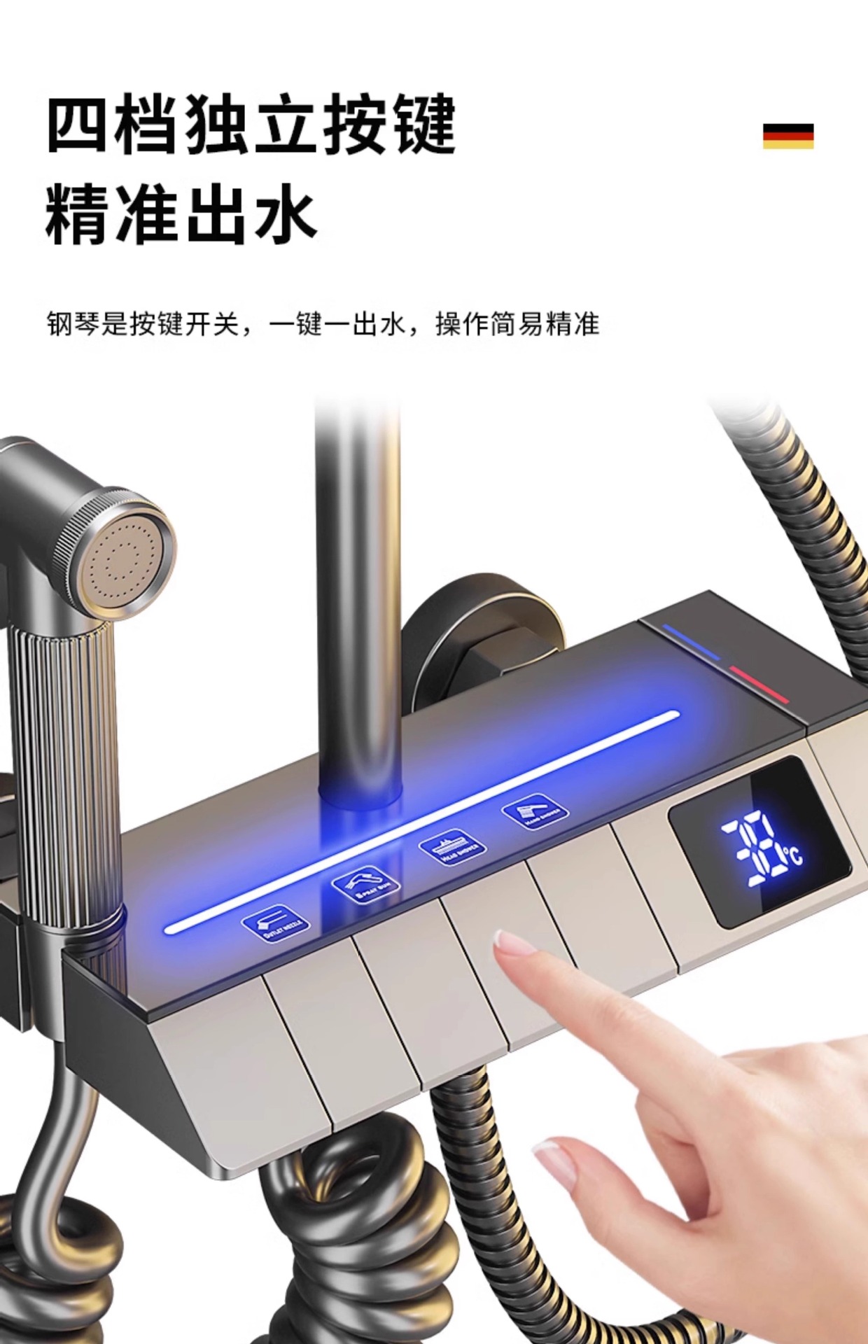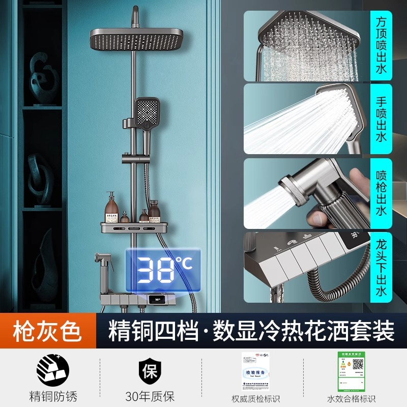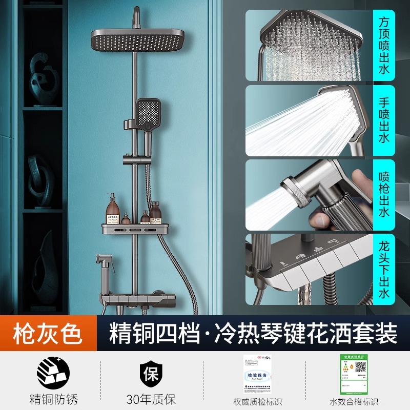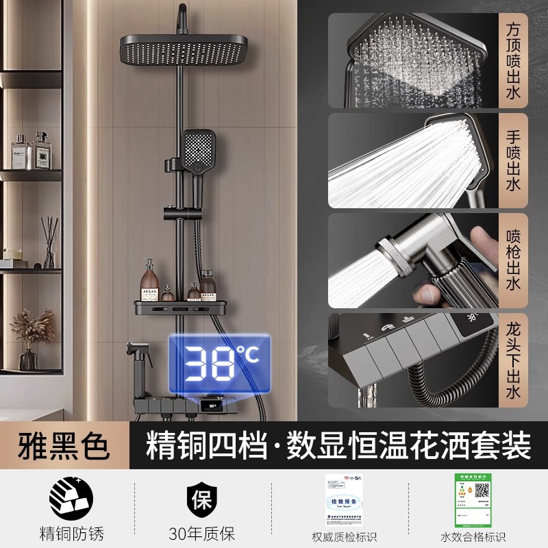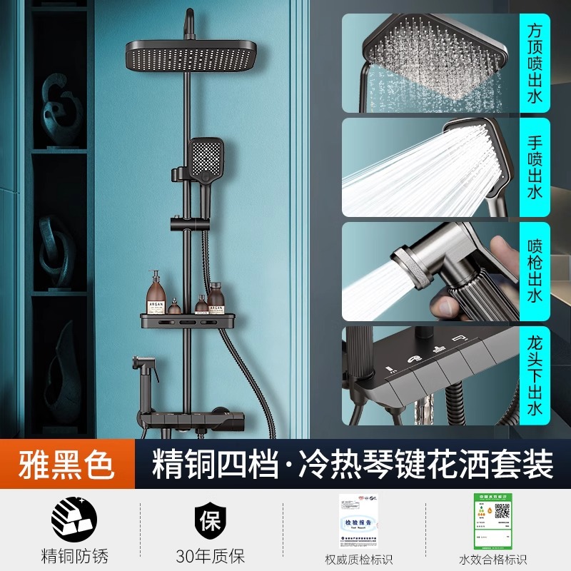 샤워 헤드 세트 고급 구리 피아노 항온 분위기 홈 욕실 목욕 디지털 디스플레이 지능형 부스터 샤워 헤드