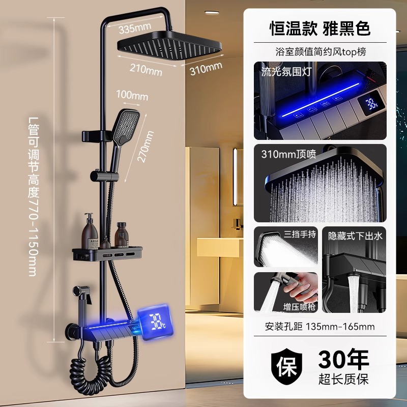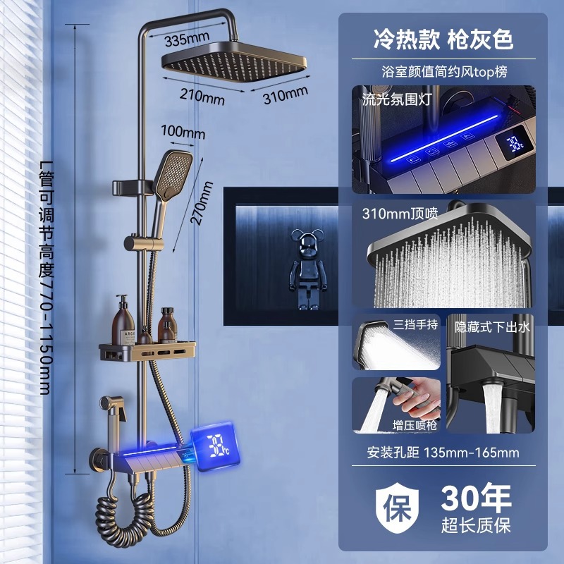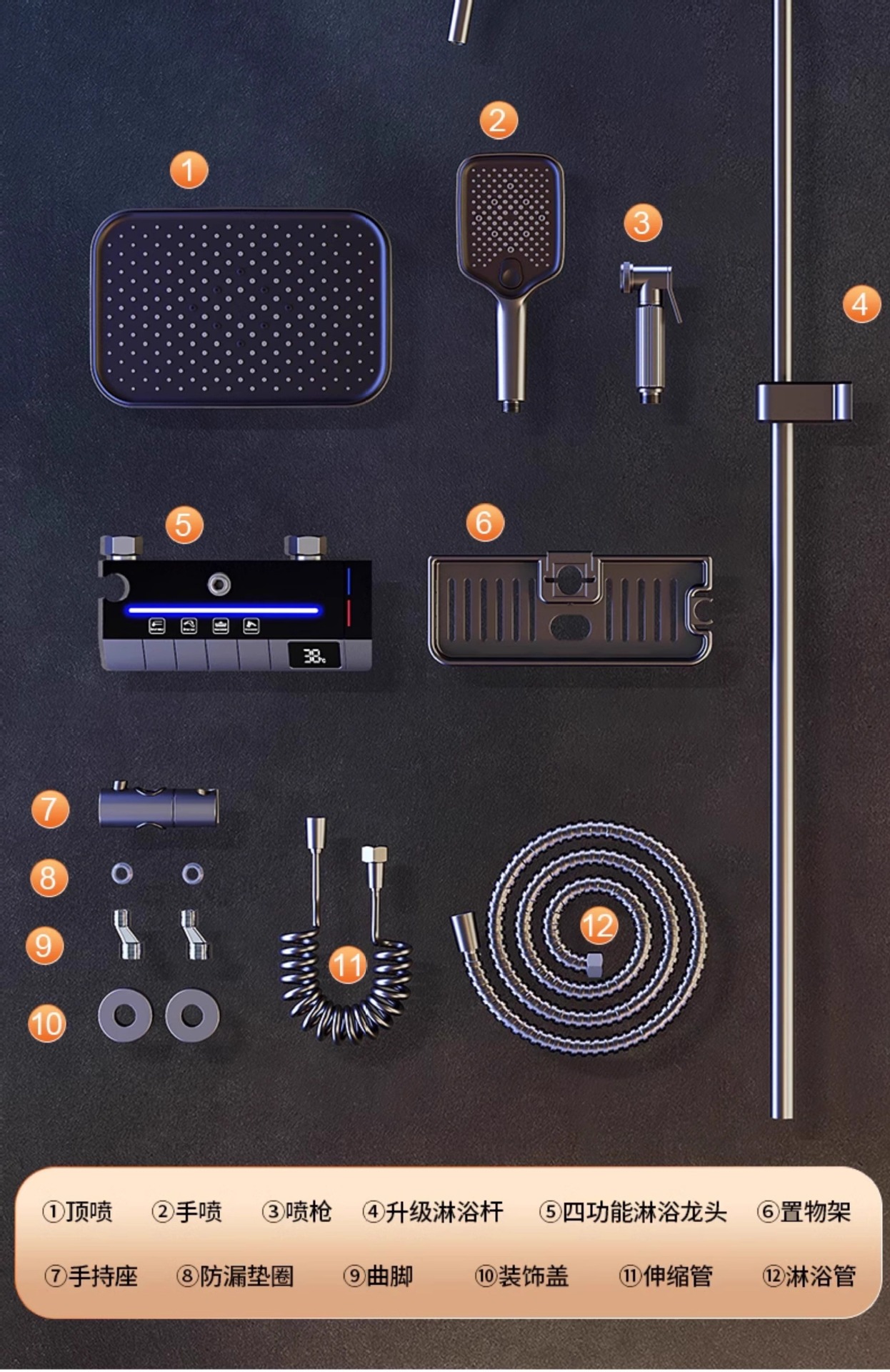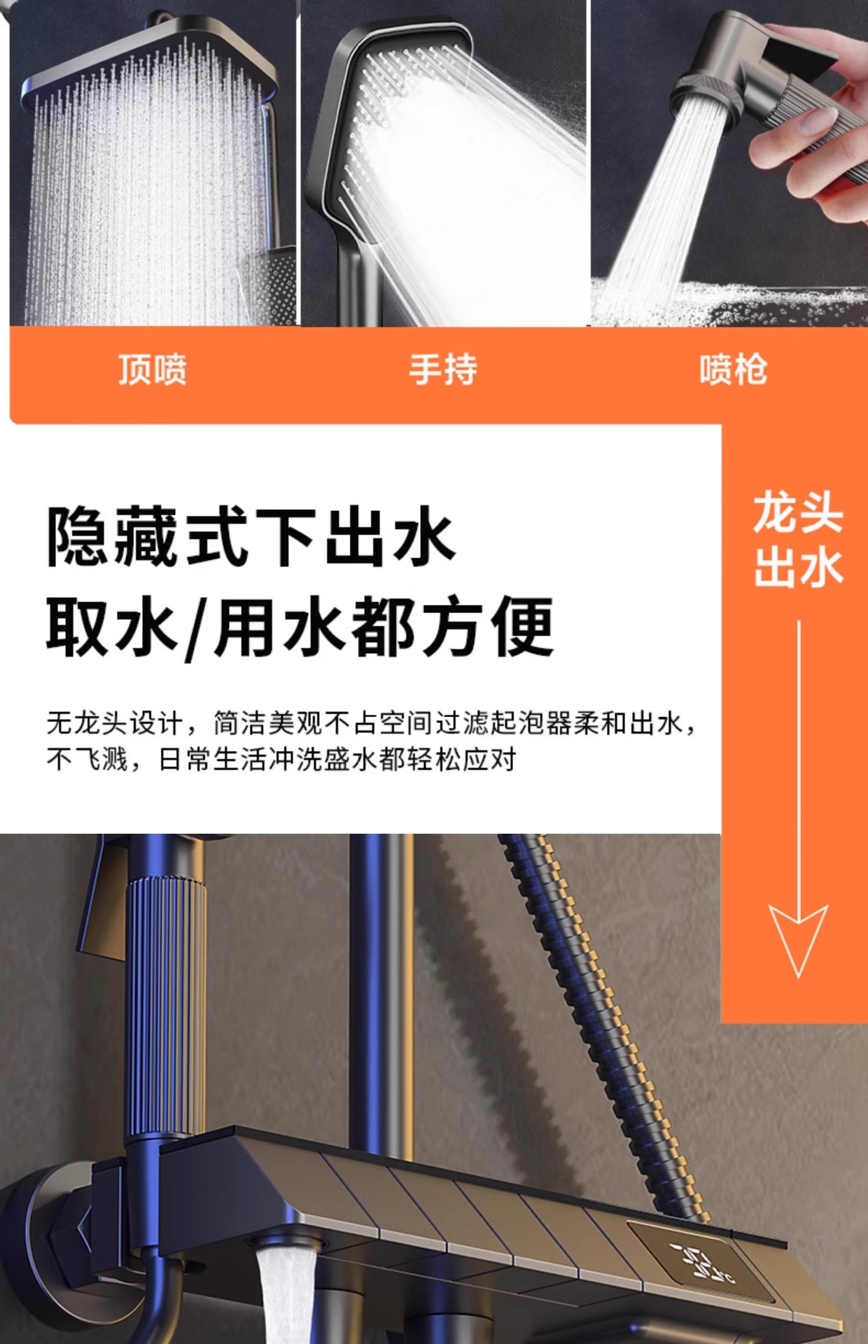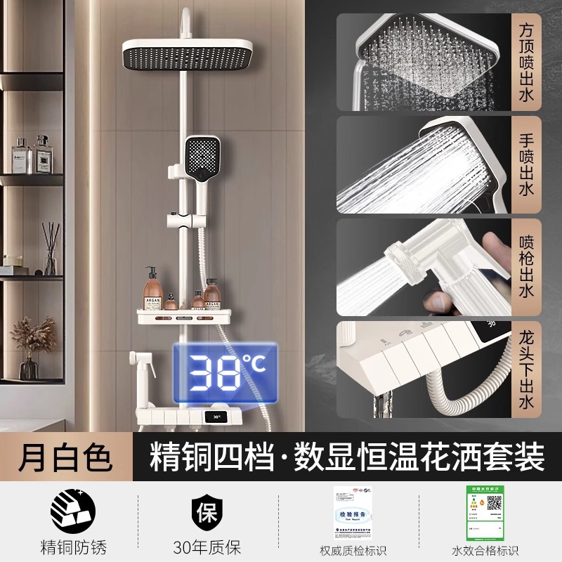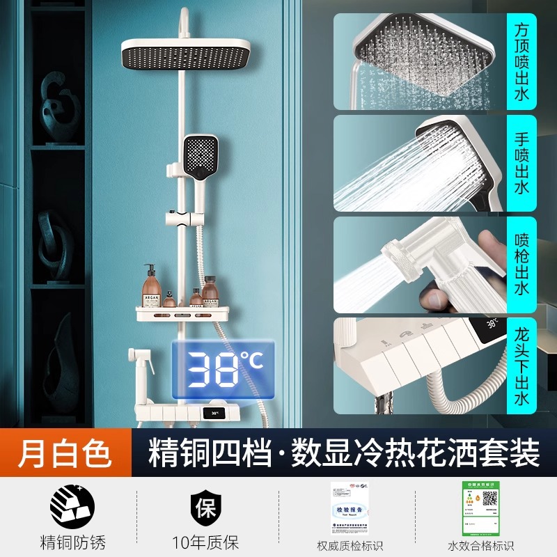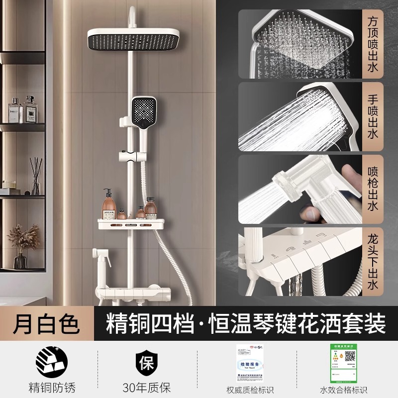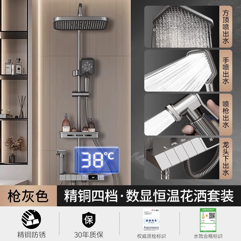 샤워 헤드 세트 고급 구리 피아노 항온 분위기 홈 욕실 목욕 디지털 디스플레이 지능형 부스터 샤워 헤드