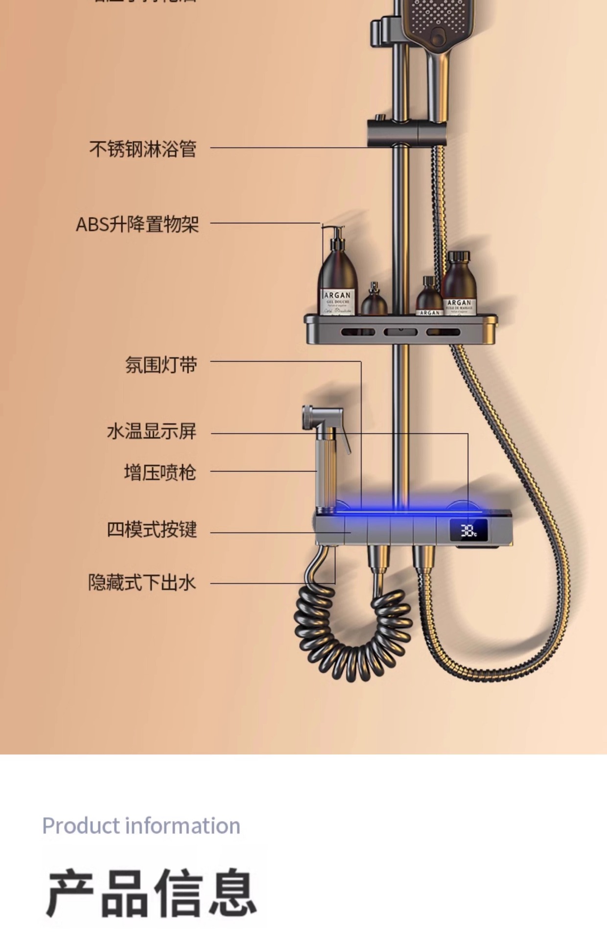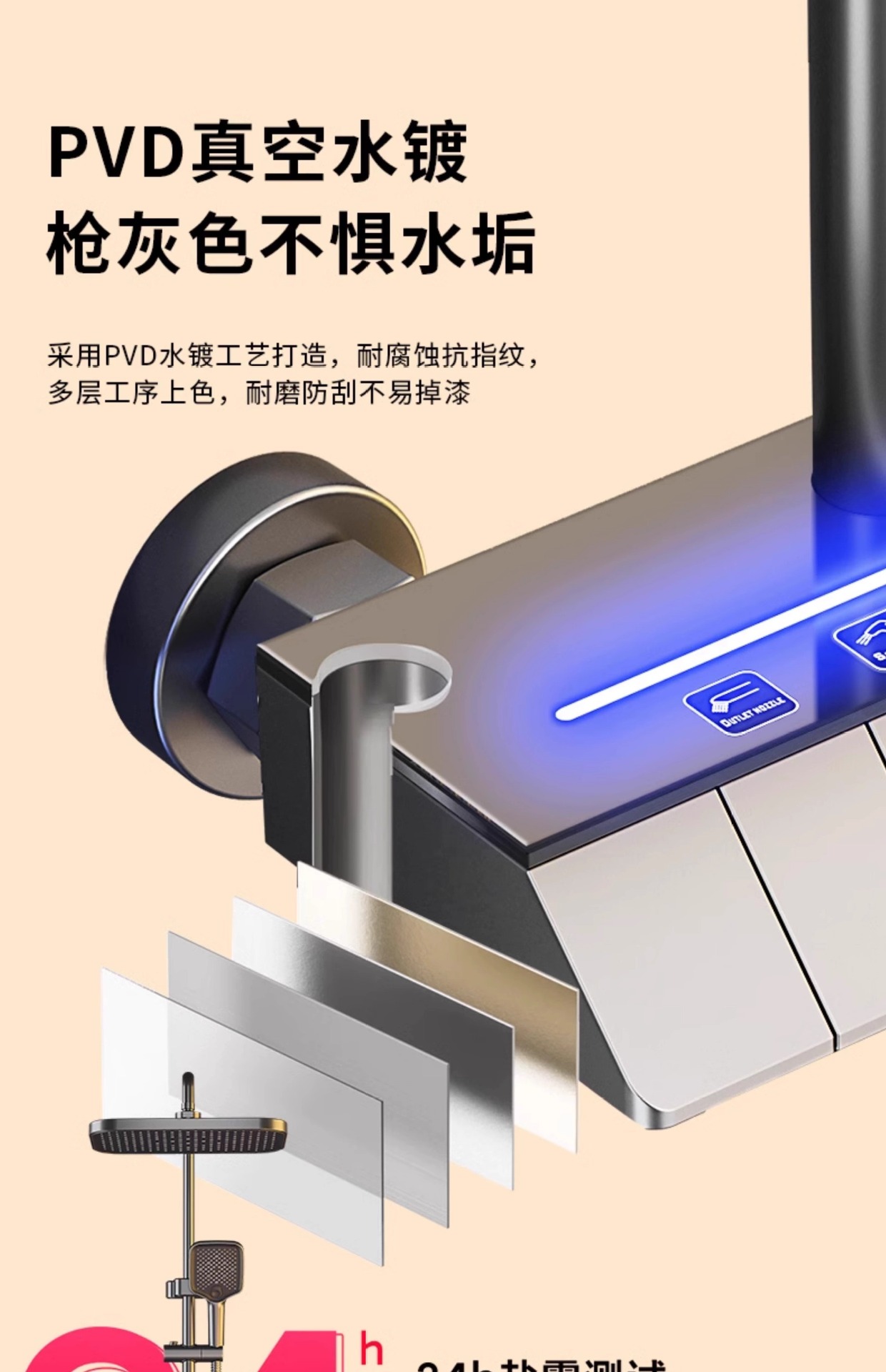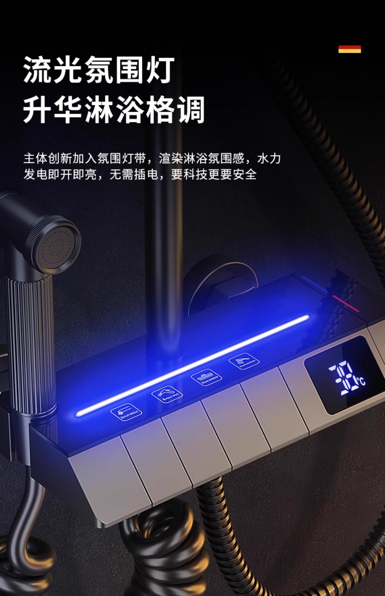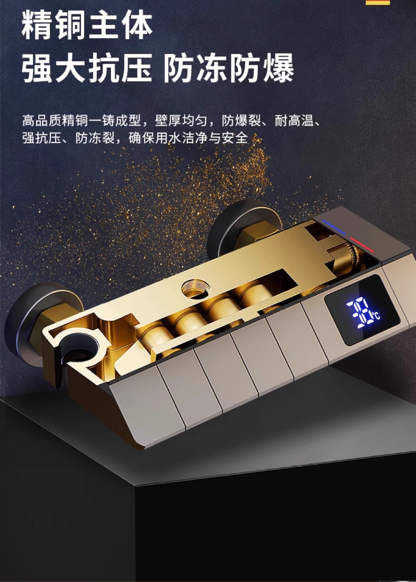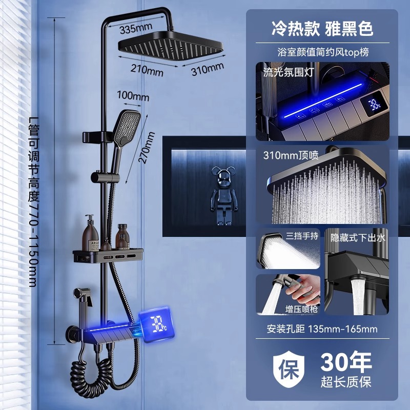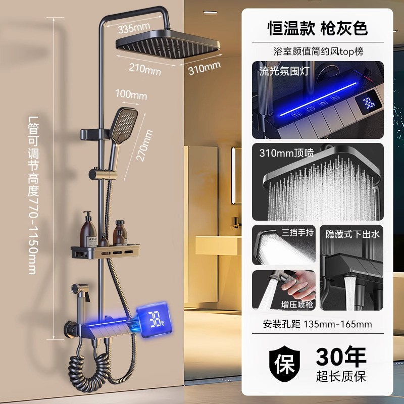 샤워 헤드 세트 고급 구리 피아노 항온 분위기 홈 욕실 목욕 디지털 디스플레이 지능형 부스터 샤워 헤드