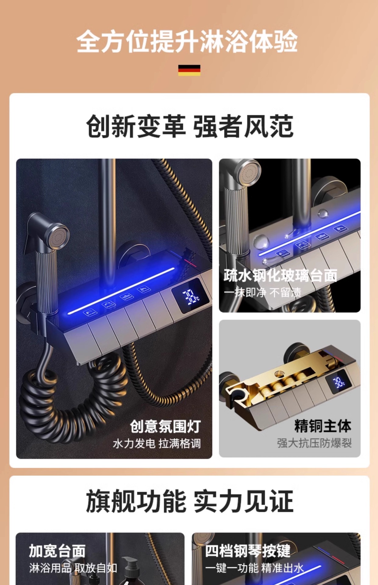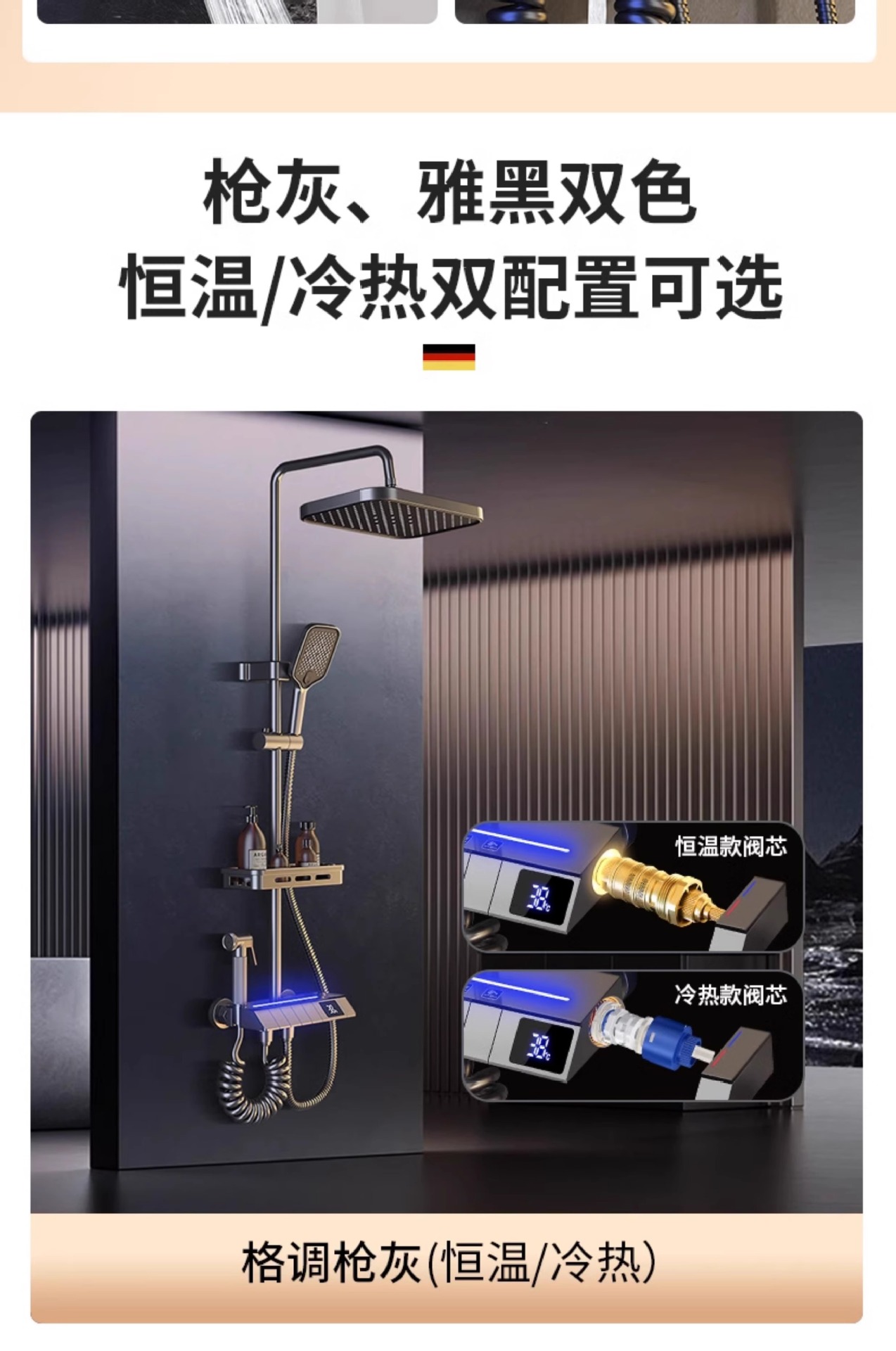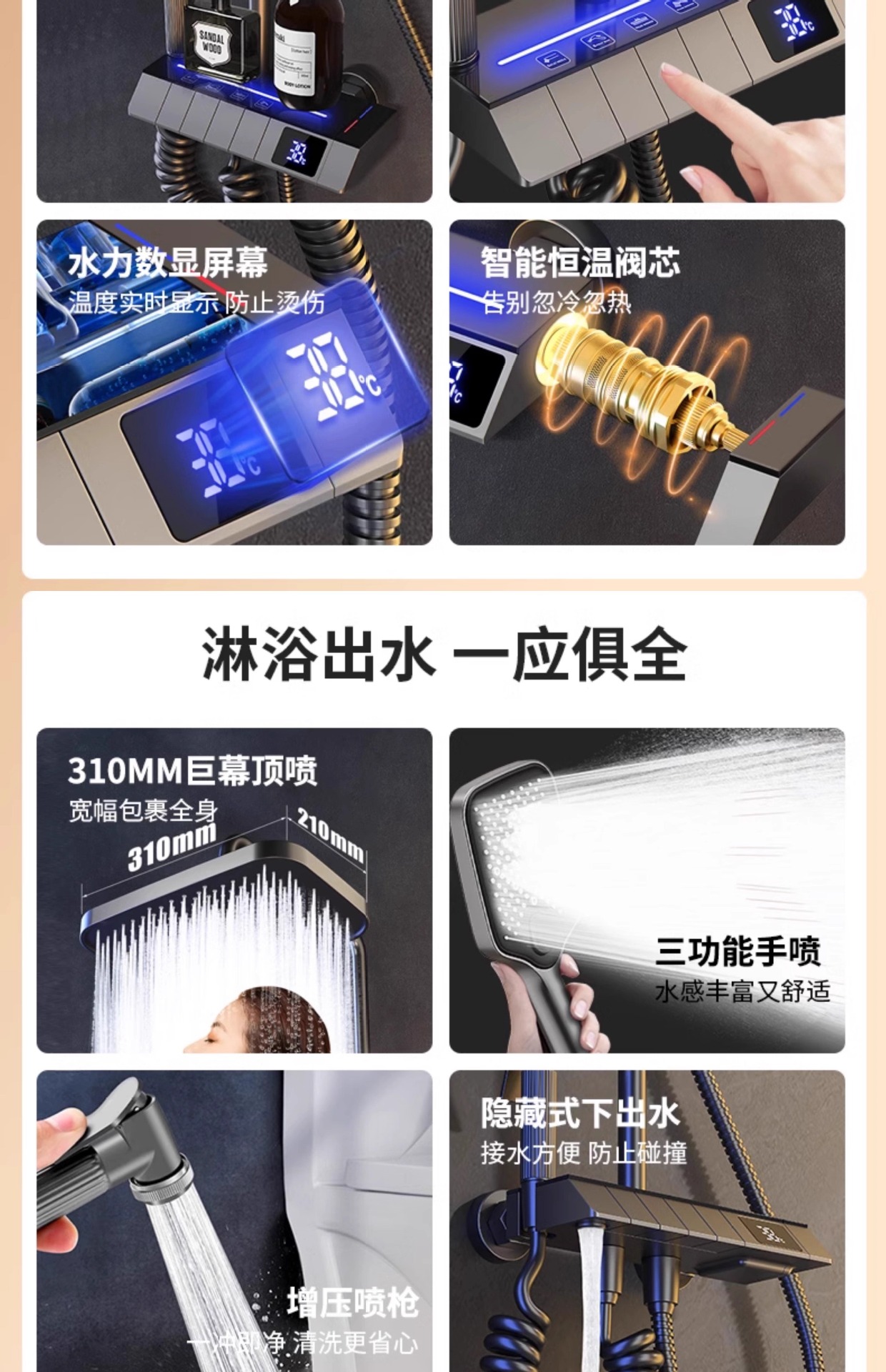 샤워 헤드 세트 고급 구리 피아노 항온 분위기 홈 욕실 목욕 디지털 디스플레이 지능형 부스터 샤워 헤드스토어 가기