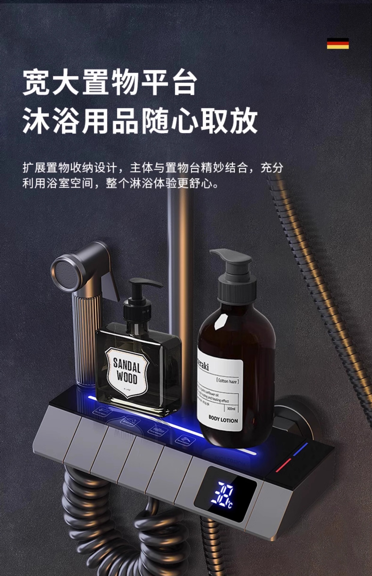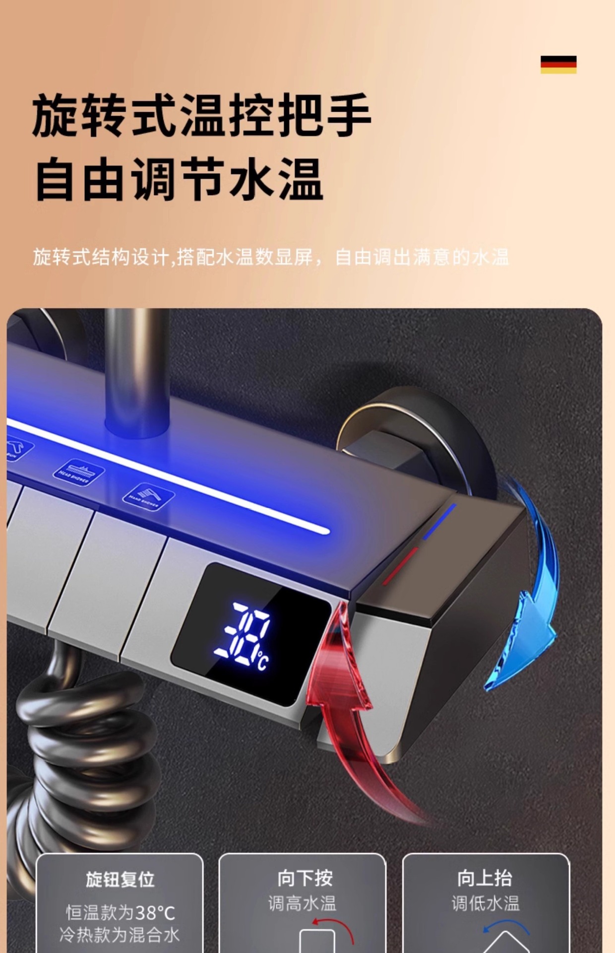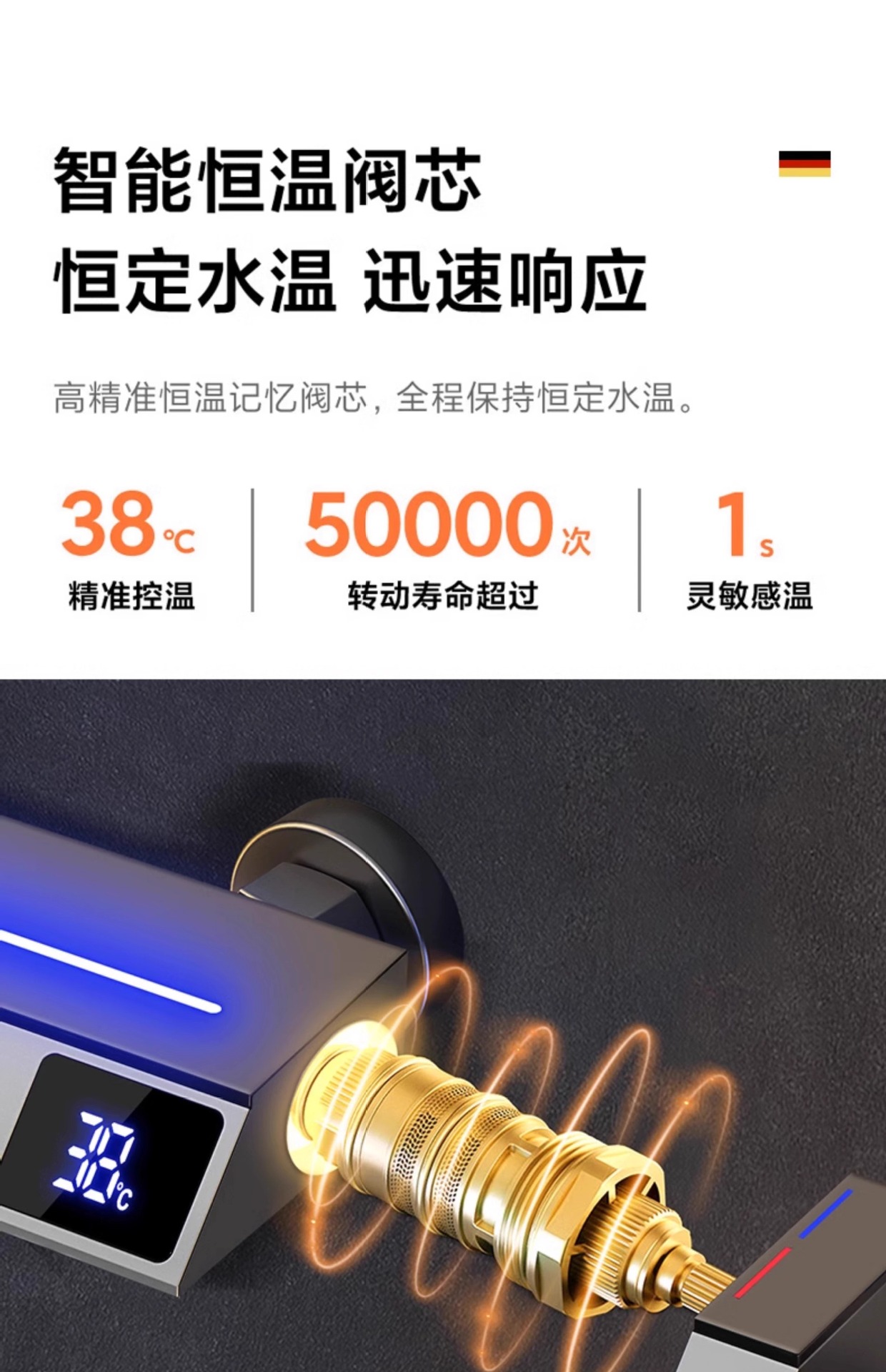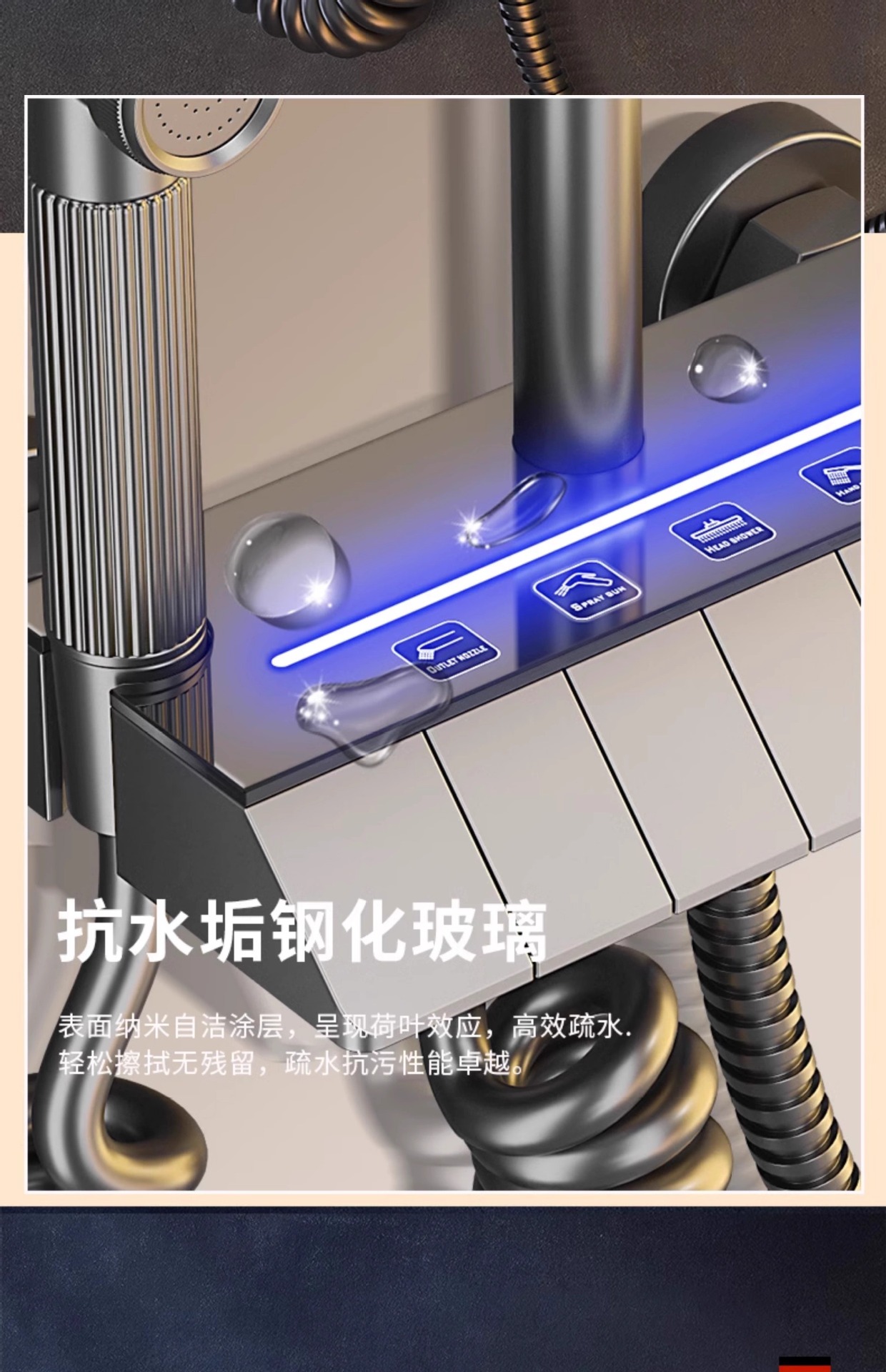 샤워 헤드 세트 고급 구리 피아노 항온 분위기 홈 욕실 목욕 디지털 디스플레이 지능형 부스터 샤워 헤드스토어 가기