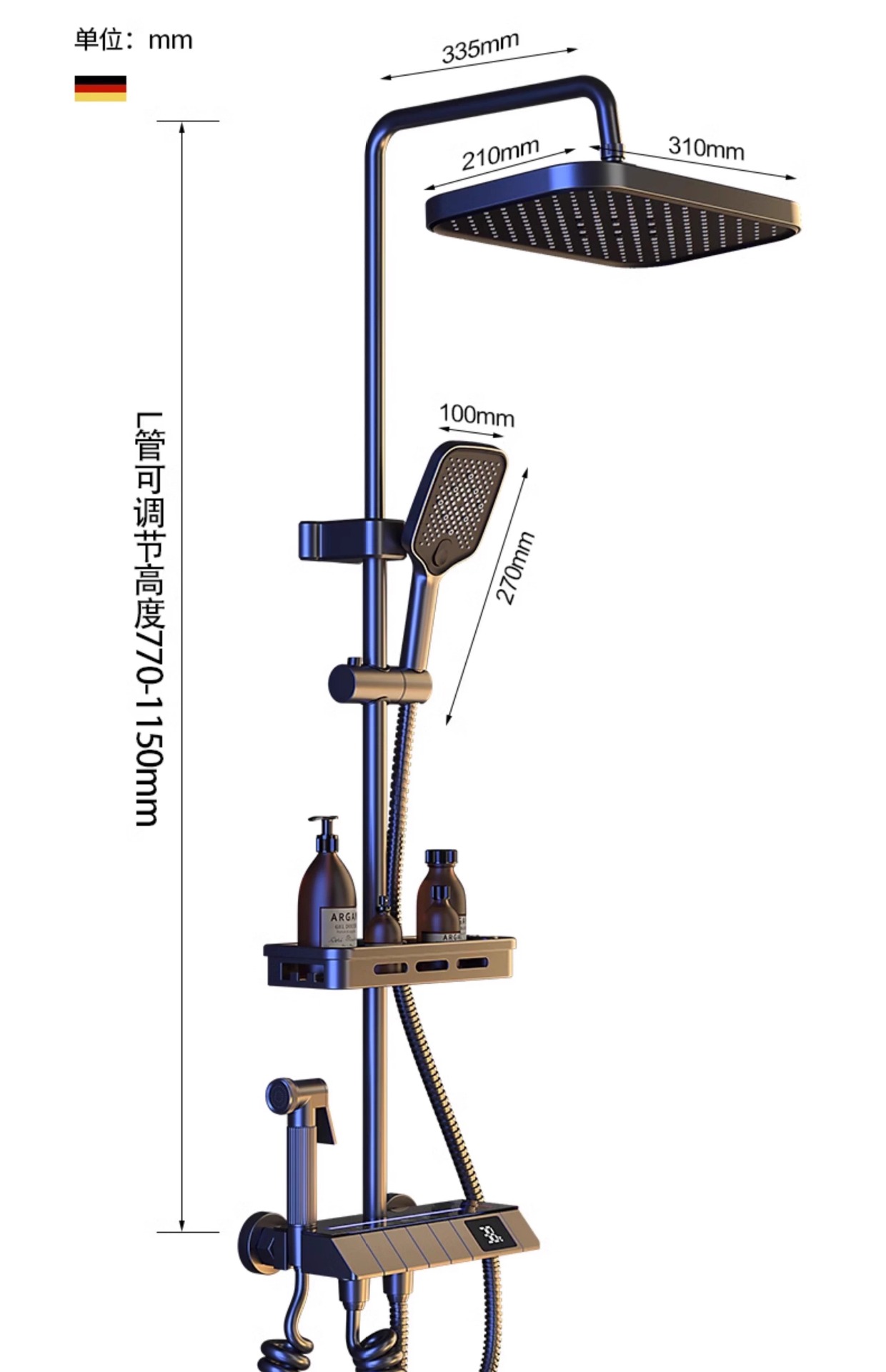 • [주변광 디지털 디스플레이] 우아한 블랙 - 4단계 항온수 배출구 - 프리 수납선반