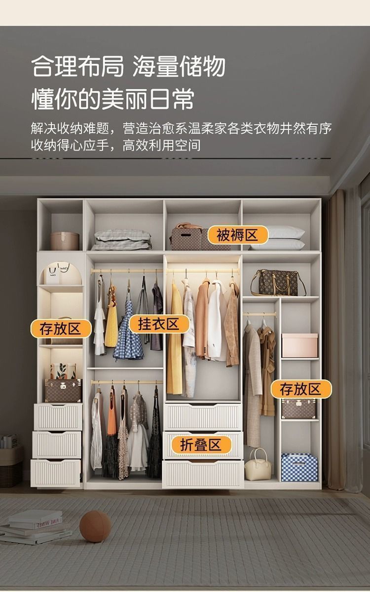 프렌치 크림 스타일 옷장 작은 아파트 슬라이딩 도어 홈 침실 보관 캐비닛 현대적인 단순 고급 완제품 옷장스토어 가기