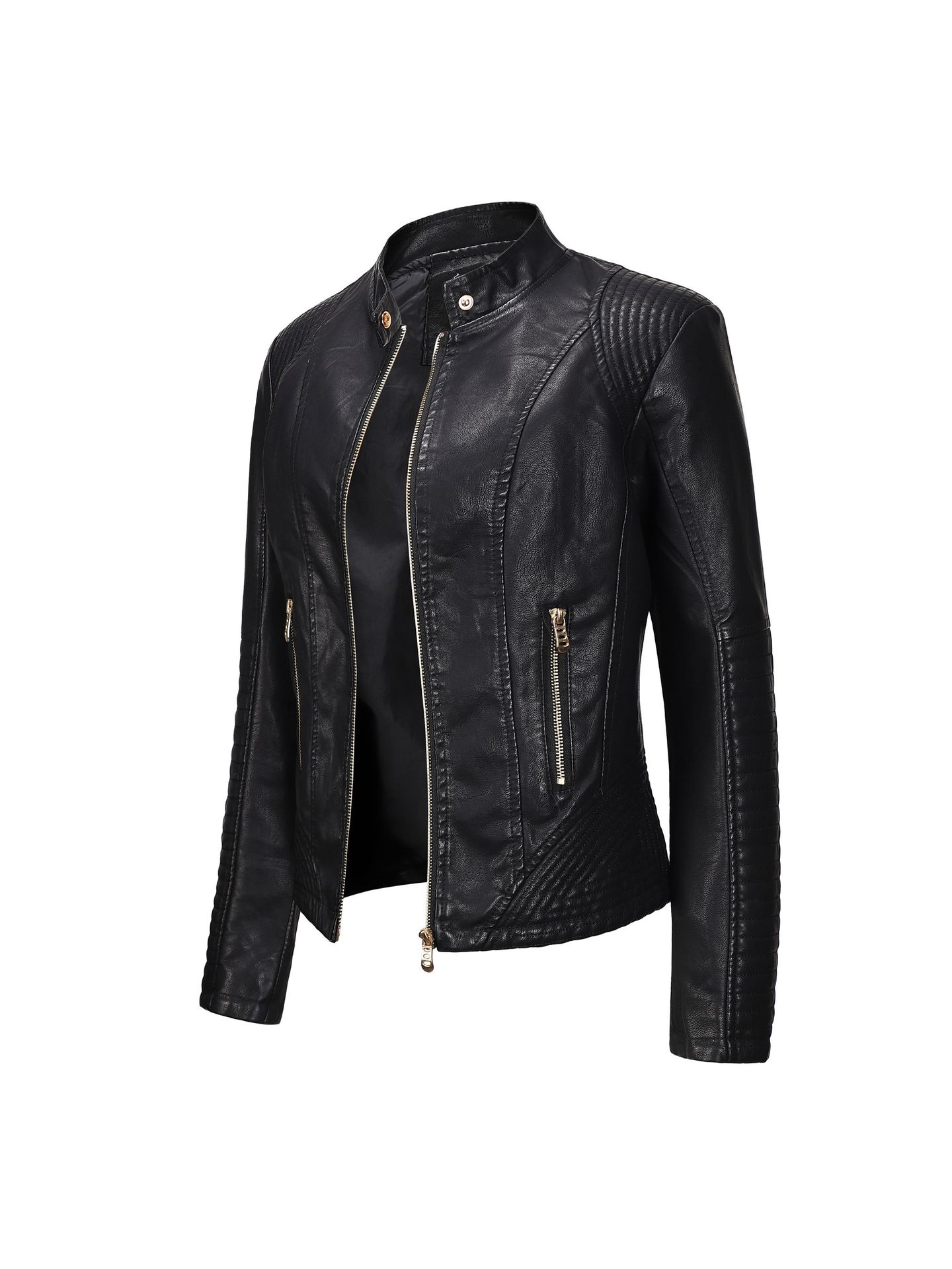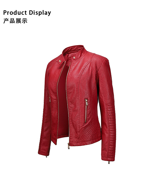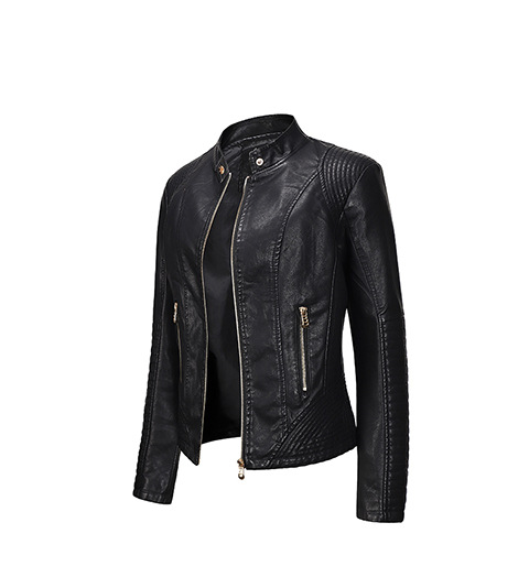 국경 간 공급 클래식 가을, 겨울 여성 pu 가죽 오토바이 가죽 자켓 슬림 가죽 자켓 스탠드 칼라 가죽 자켓