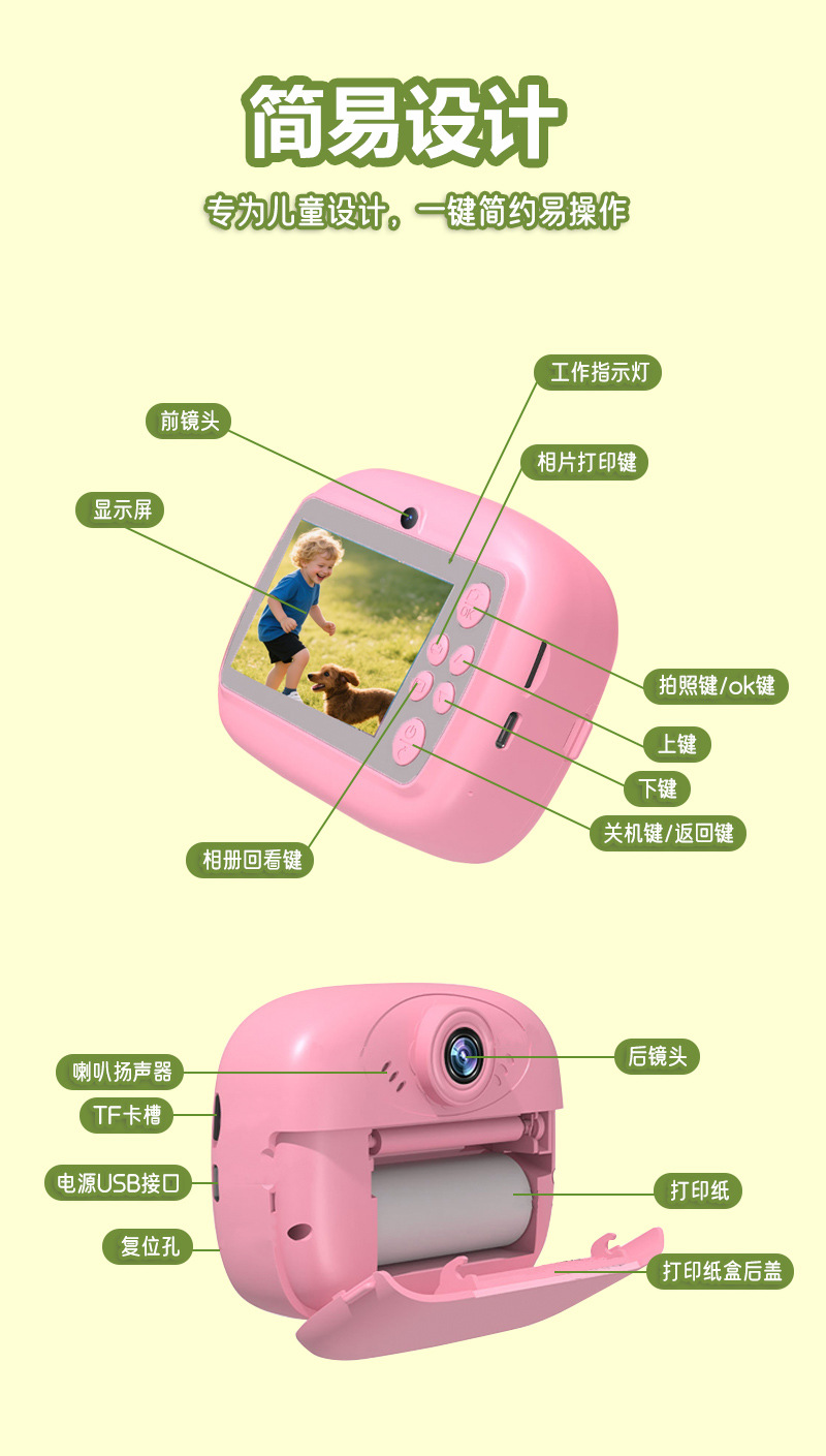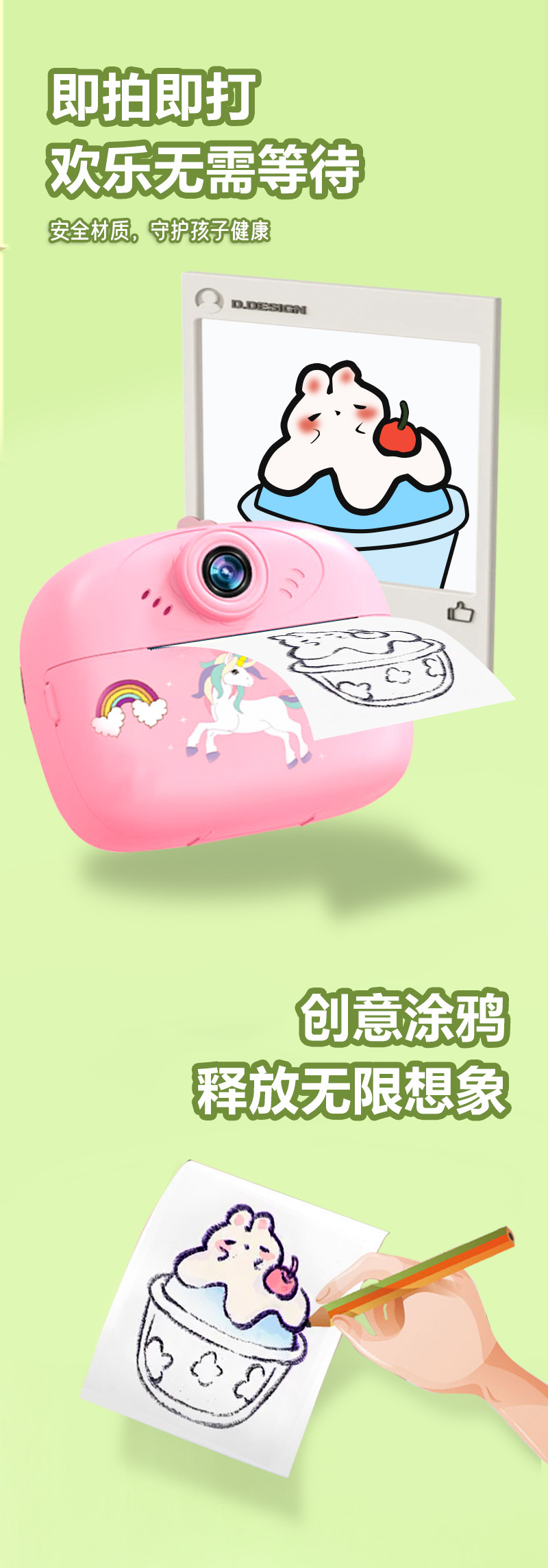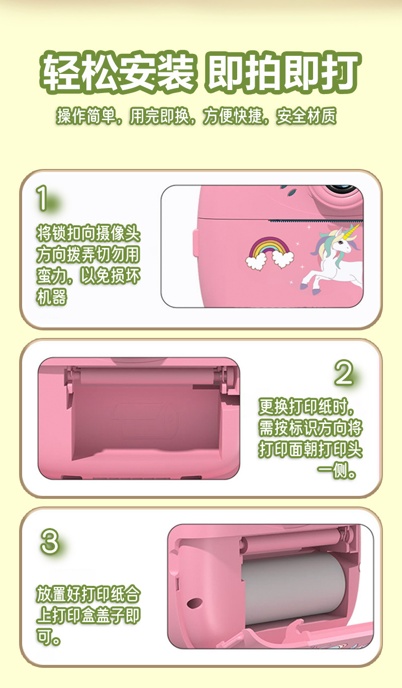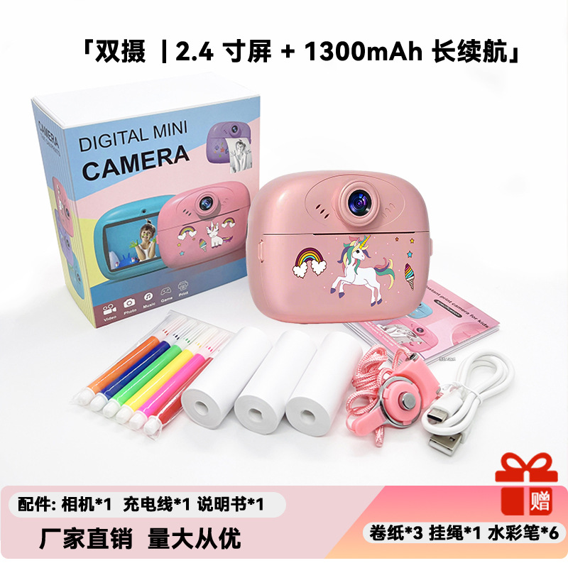 • 핑크색 작은 유니콘|듀얼 카메라 2.4inch /1300mAh 긴 배터리 수명/즉시 인쇄