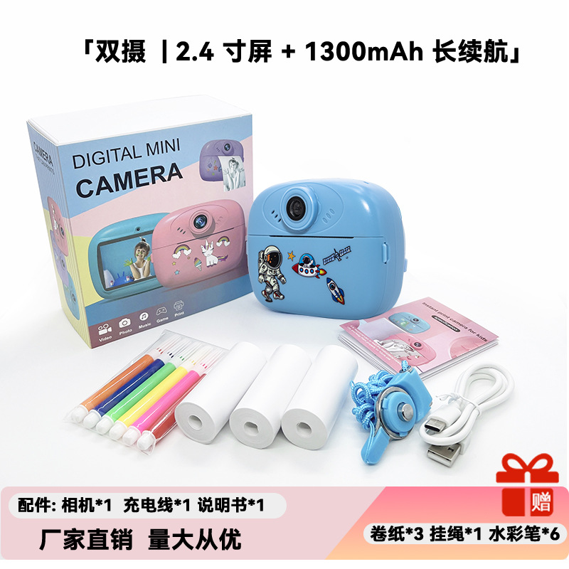 • 파란 우주 비행사|듀얼 카메라 2.4inch /1300mAh 긴 배터리 수명/즉시 인쇄