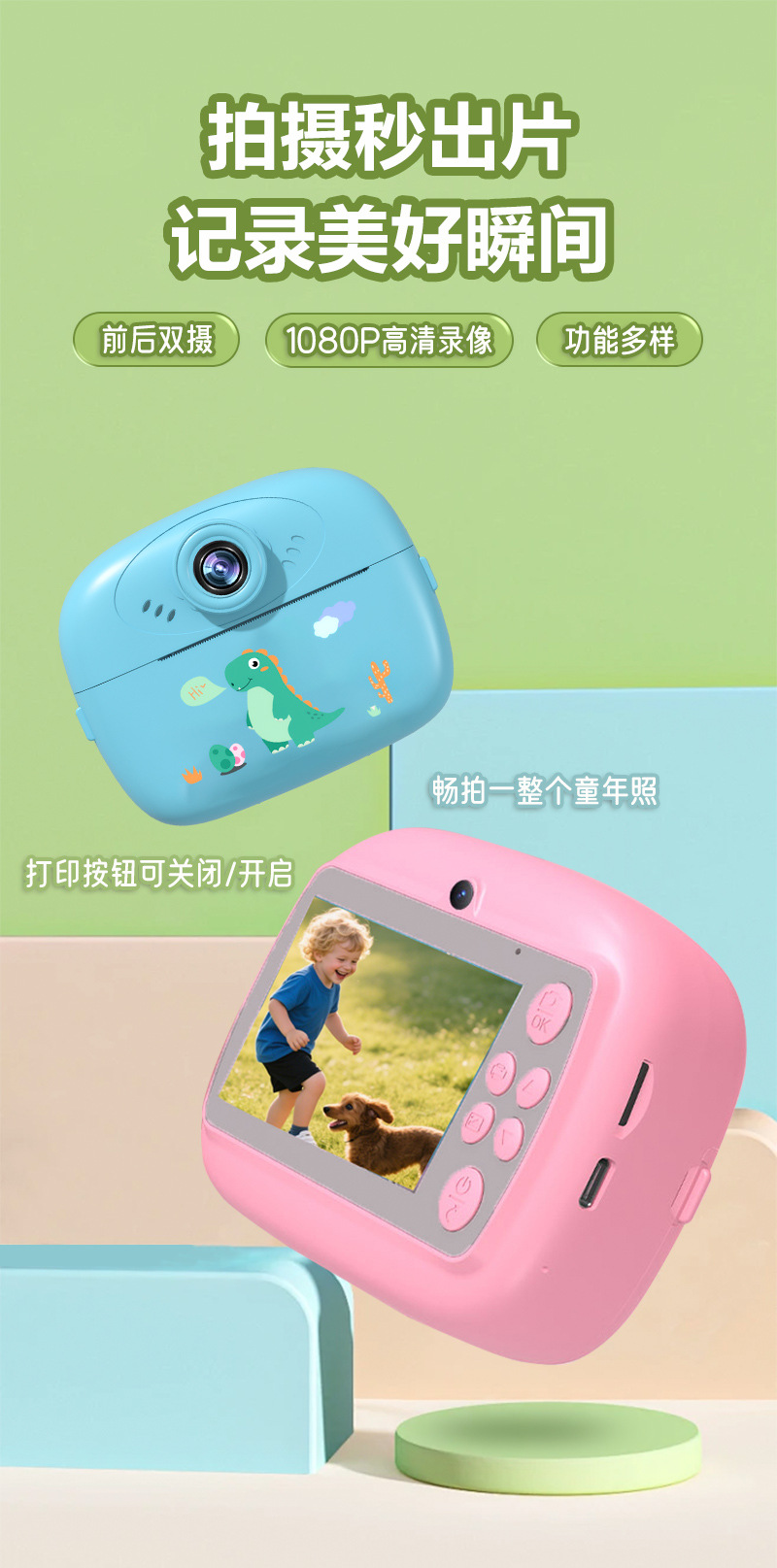 • 작은 파란색 공룡 | 듀얼 카메라 2.4inch /1300mAh 긴 배터리 수명/즉시 인쇄