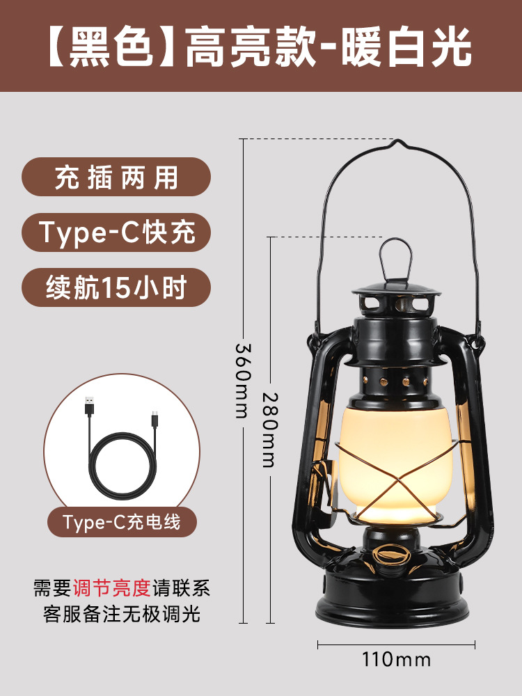 • A형 따뜻한 백색광 + 충전기(청동 램프 본체) type-c 고속 충전