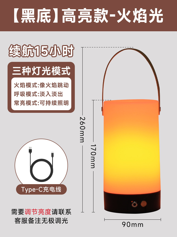 • [업그레이드된 고휘도 휴대용 모델] 블랙 + 플레임 라이트 Type-c 고속 충전
