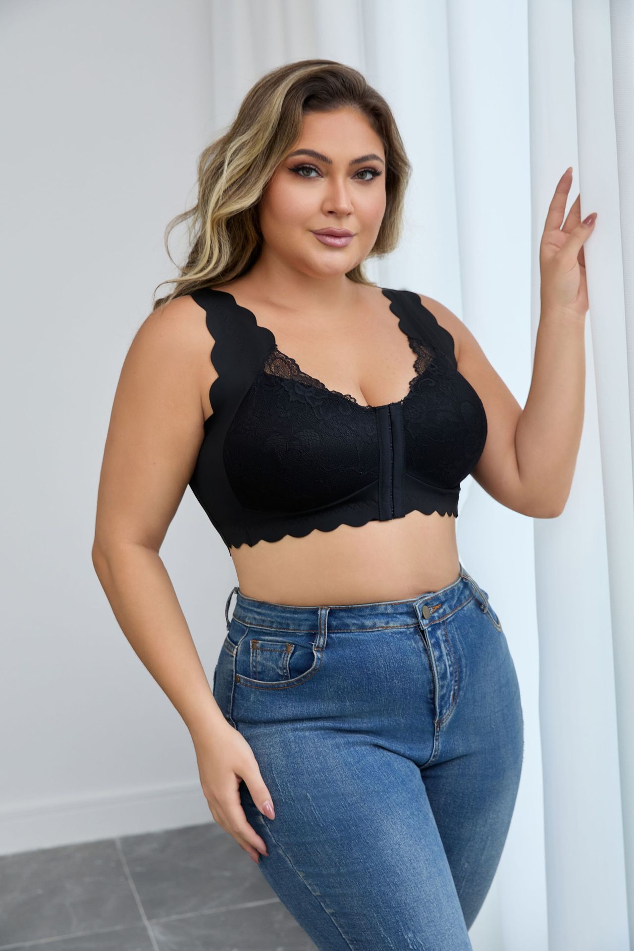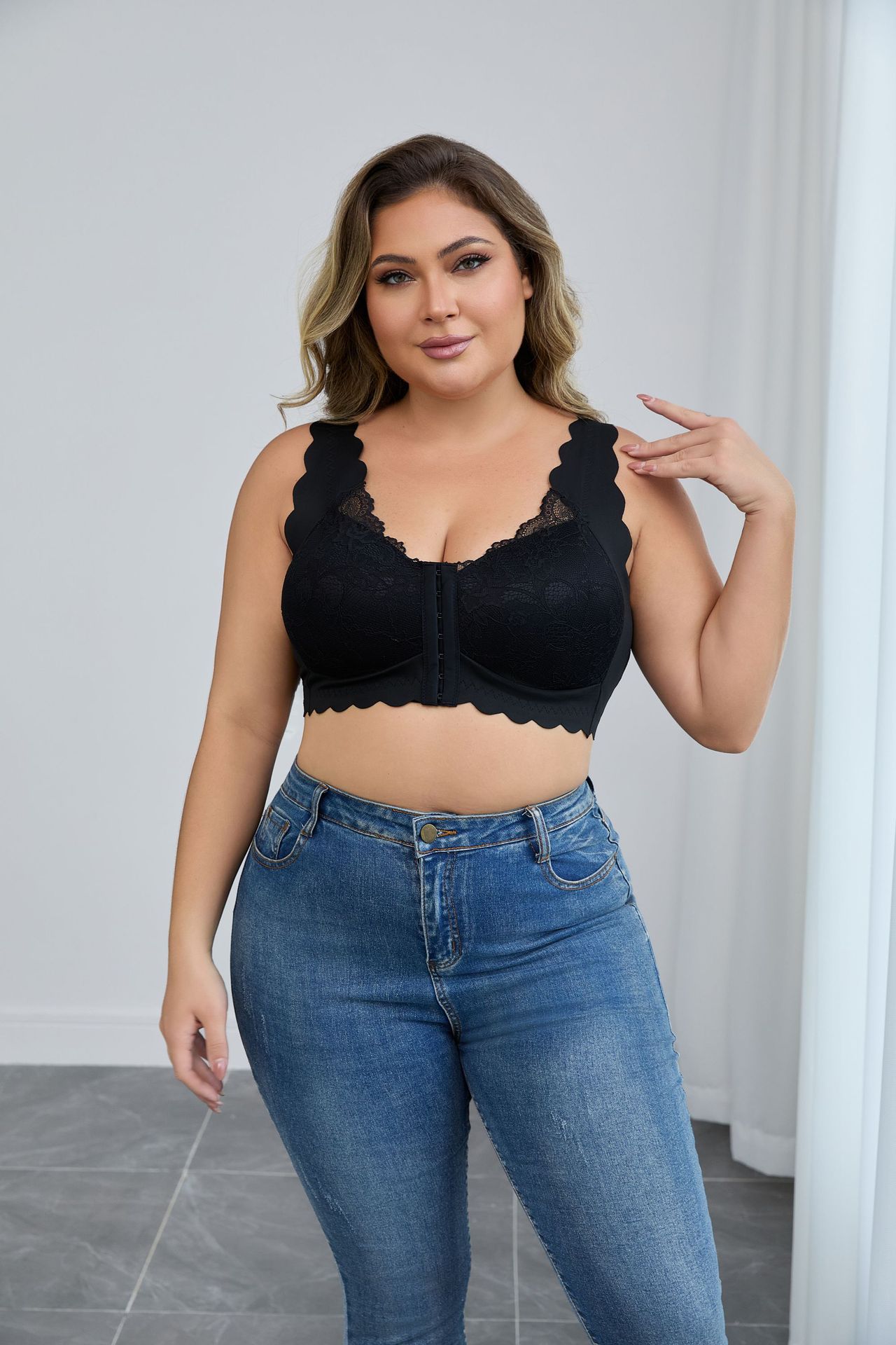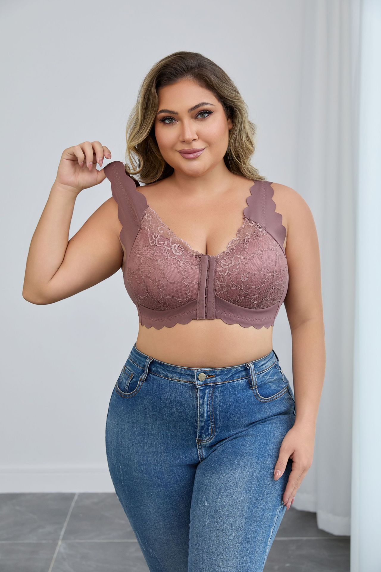 크로스보더 프론트 버튼 대형 레이스 섹시한 브라 푸시업 속옷 조절 가능한 와이어 프리 유럽 및 미국 여성용 얇은 브라스토어 가기