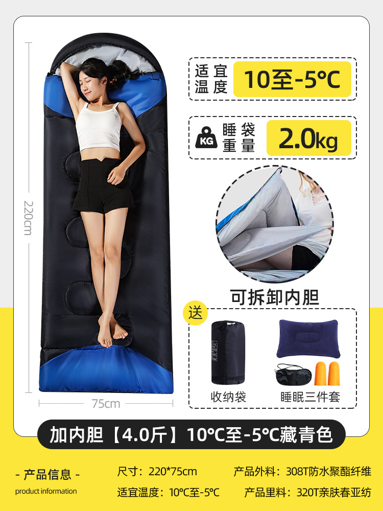 야외용 성인용 침낭, 사계절 만능 이불, 겸용 캠핑, 경량 여름 캠핑, 밤새 차량, 내한성스토어 가기