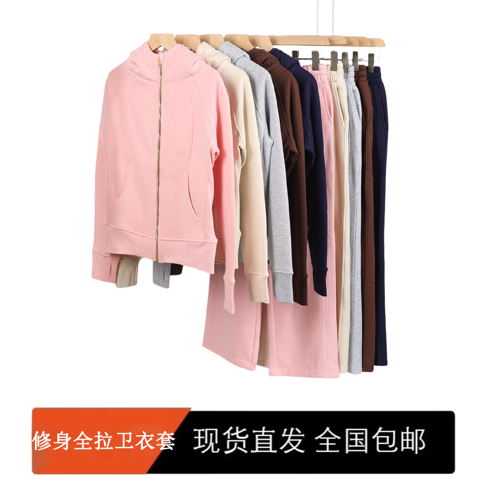 (재고 있음) 여성용 슬림핏 풀풀 스웨트셔츠 슈트, 지퍼 가디건, 플리스 재킷, 골드 라벨 플러스 벨벳 요가복스토어 가기