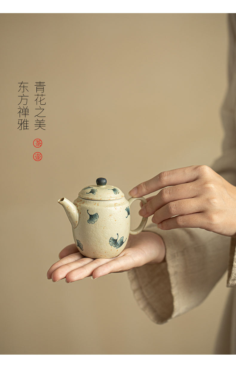 중국 스타일 파란색과 흰색 화석 홍차 주전자, 시팅 냄비, 수제 세라믹 차 세트, 절묘한 작은 냄비, 쿵푸 차 세트스토어 가기