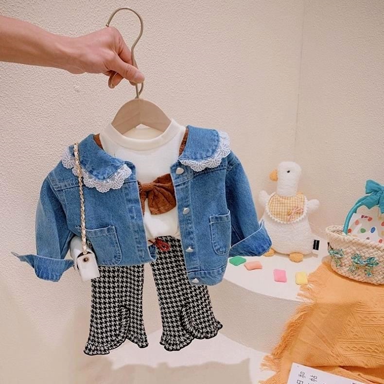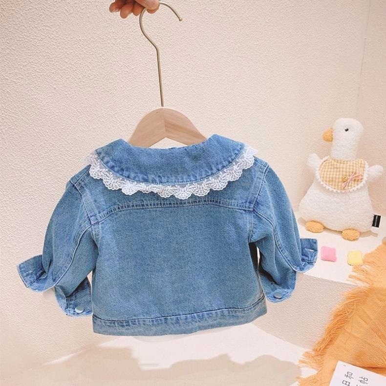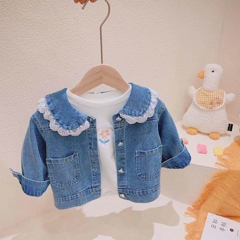 아동복 여아 2025 봄 신작 여아 레이스 라펠 데님 재킷 베이비 스타일 캐주얼 재킷 탑스토어 가기