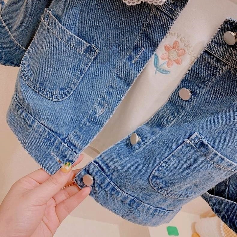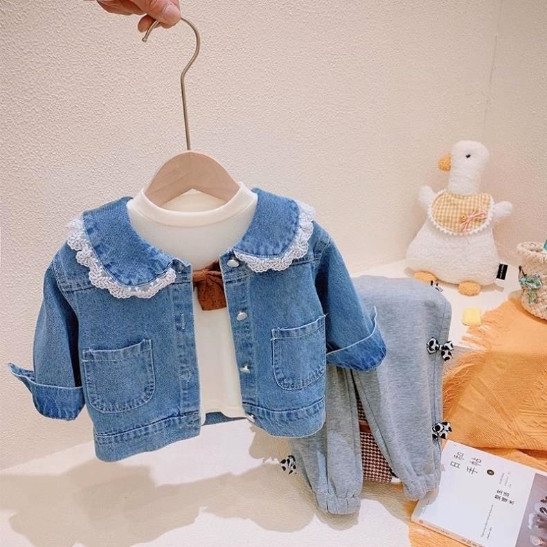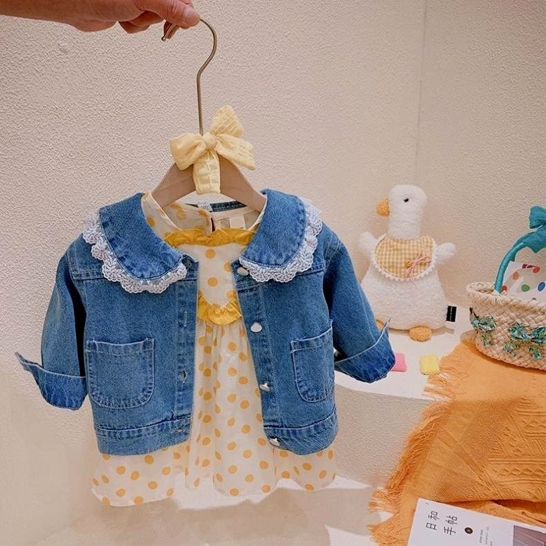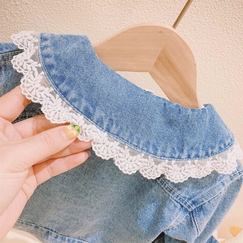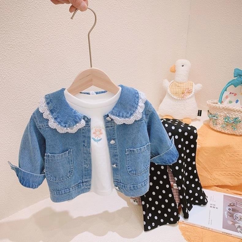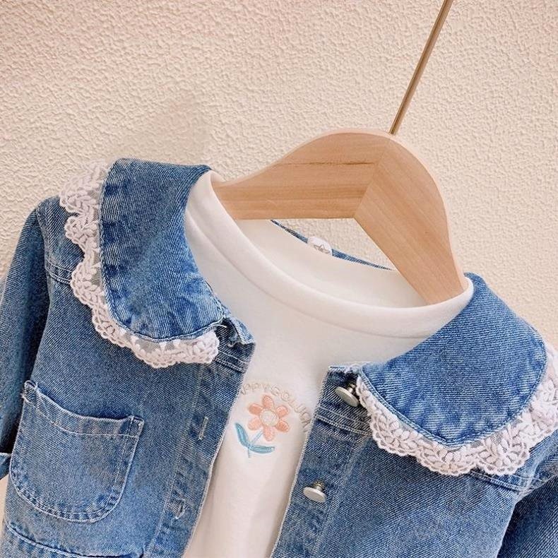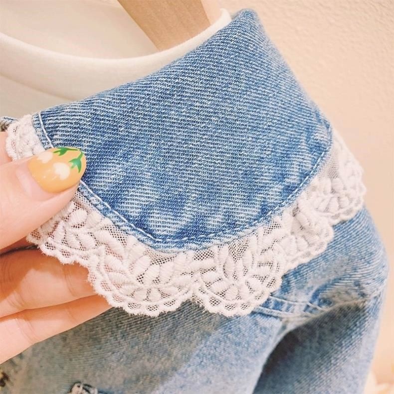 아동복 여아 2025 봄 신작 여아 레이스 라펠 데님 재킷 베이비 스타일 캐주얼 재킷 탑