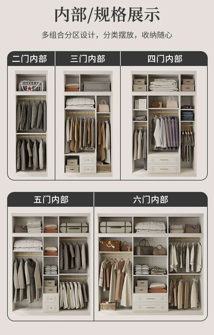 유럽식 옷장, 현대적이고 단순한 가정용 침실, 경제적인 임대 주택, 소형 아파트 전체 조립식 5~6도어 옷장
