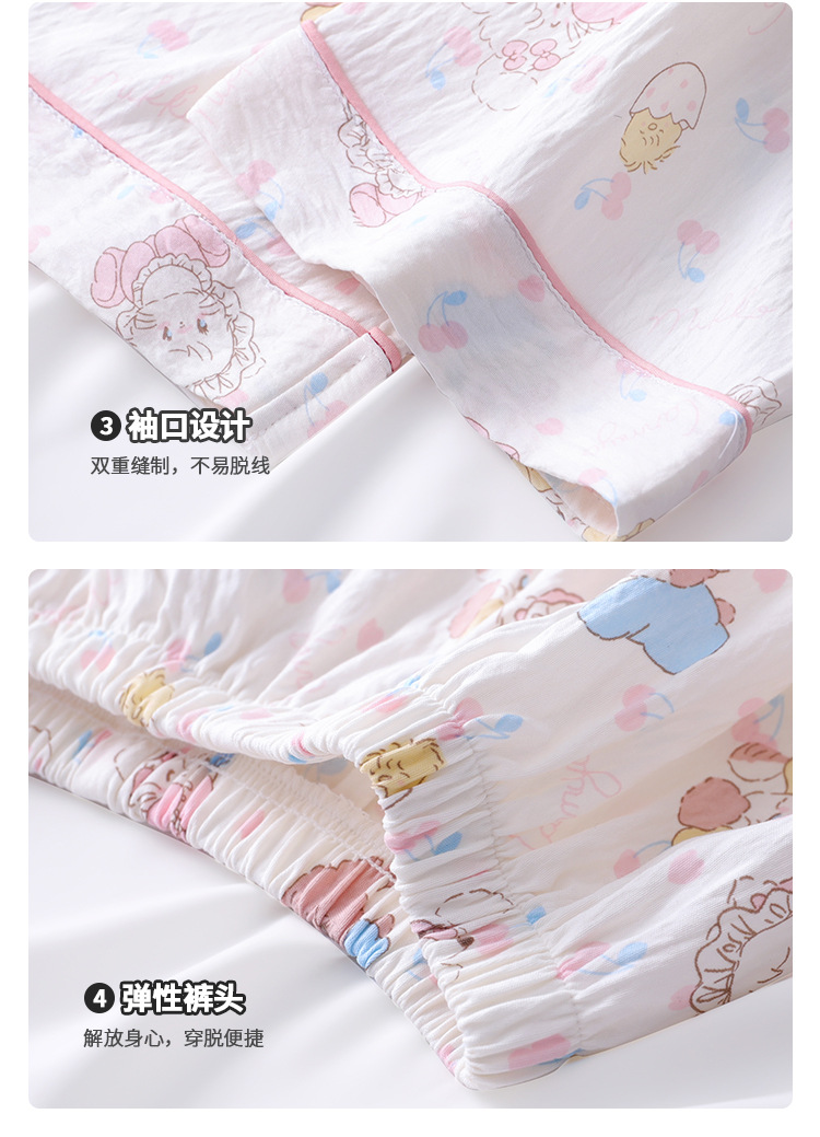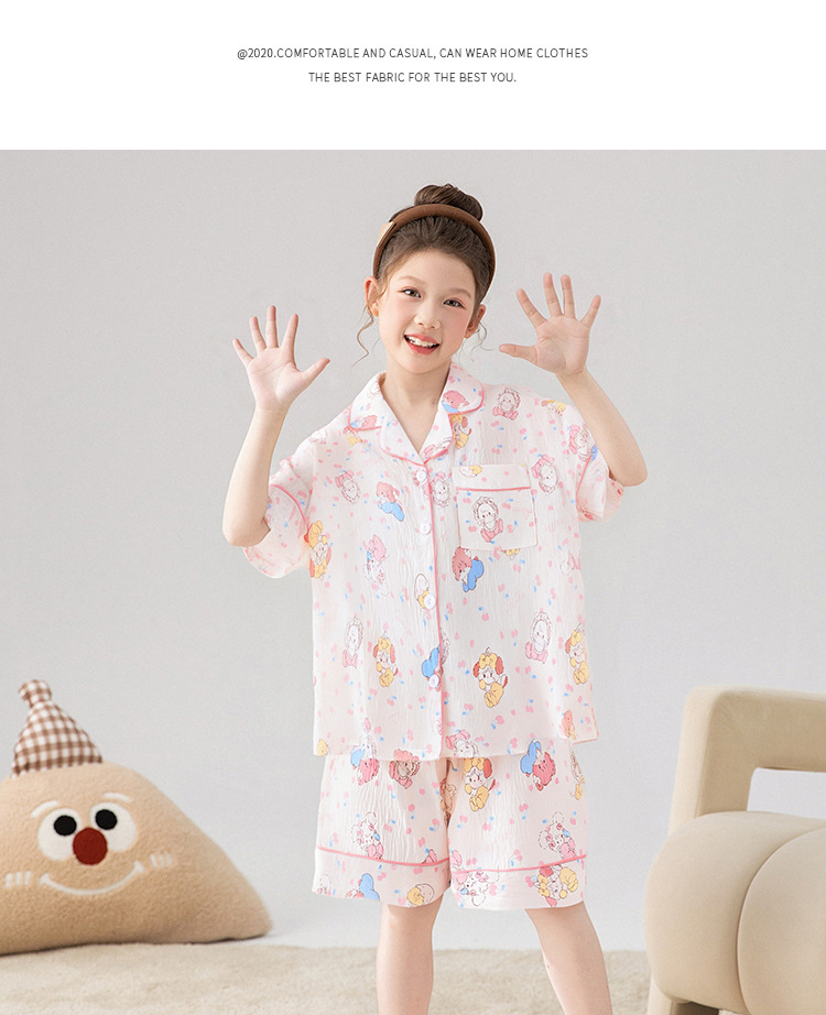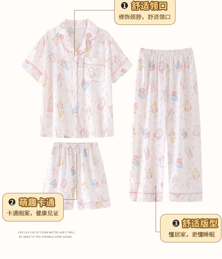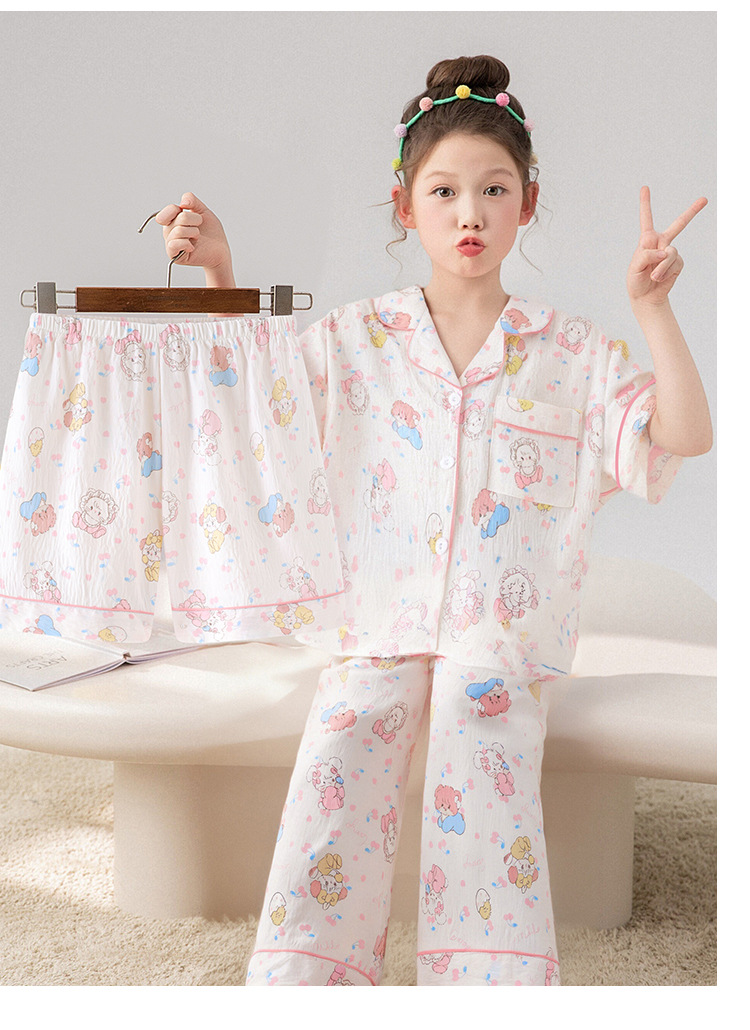 여름 여아용 아동 잠옷 3종 세트, 중학생용 구름면 얇은 에어컨 홈웨어스토어 가기