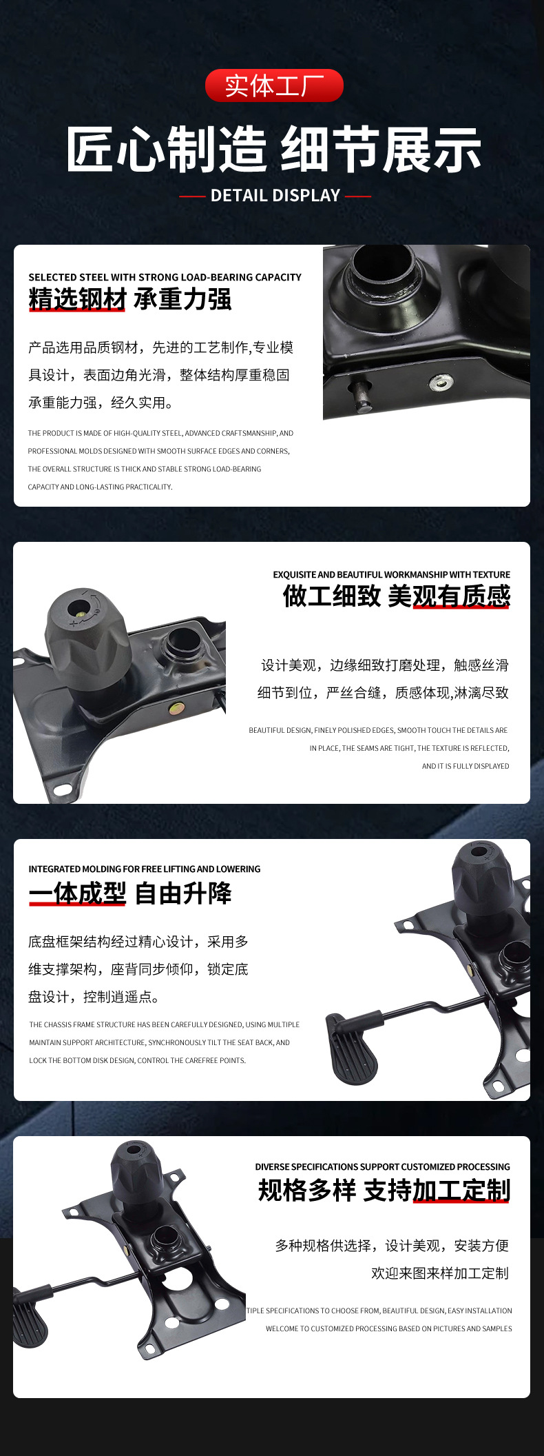 두꺼운 나비 대형 사무실 의자 섀시 e-스포츠 보스 리프팅 의자 리클라이닝 베이스 트레이 섀시 액세서리