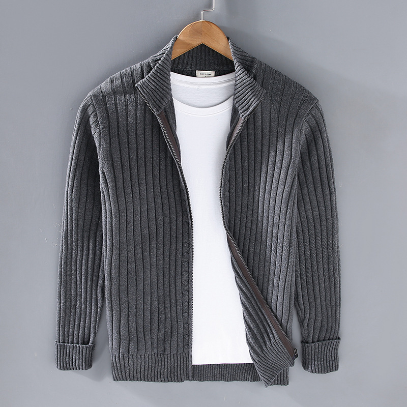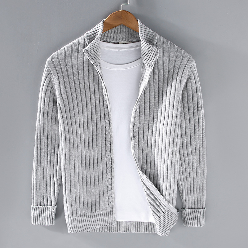 8525 봄과 가을 새로운 카디건 스웨터 남성 한국 스타일 트렌디 지퍼 바닥 겉옷 지퍼 블랙 스웨터 재킷