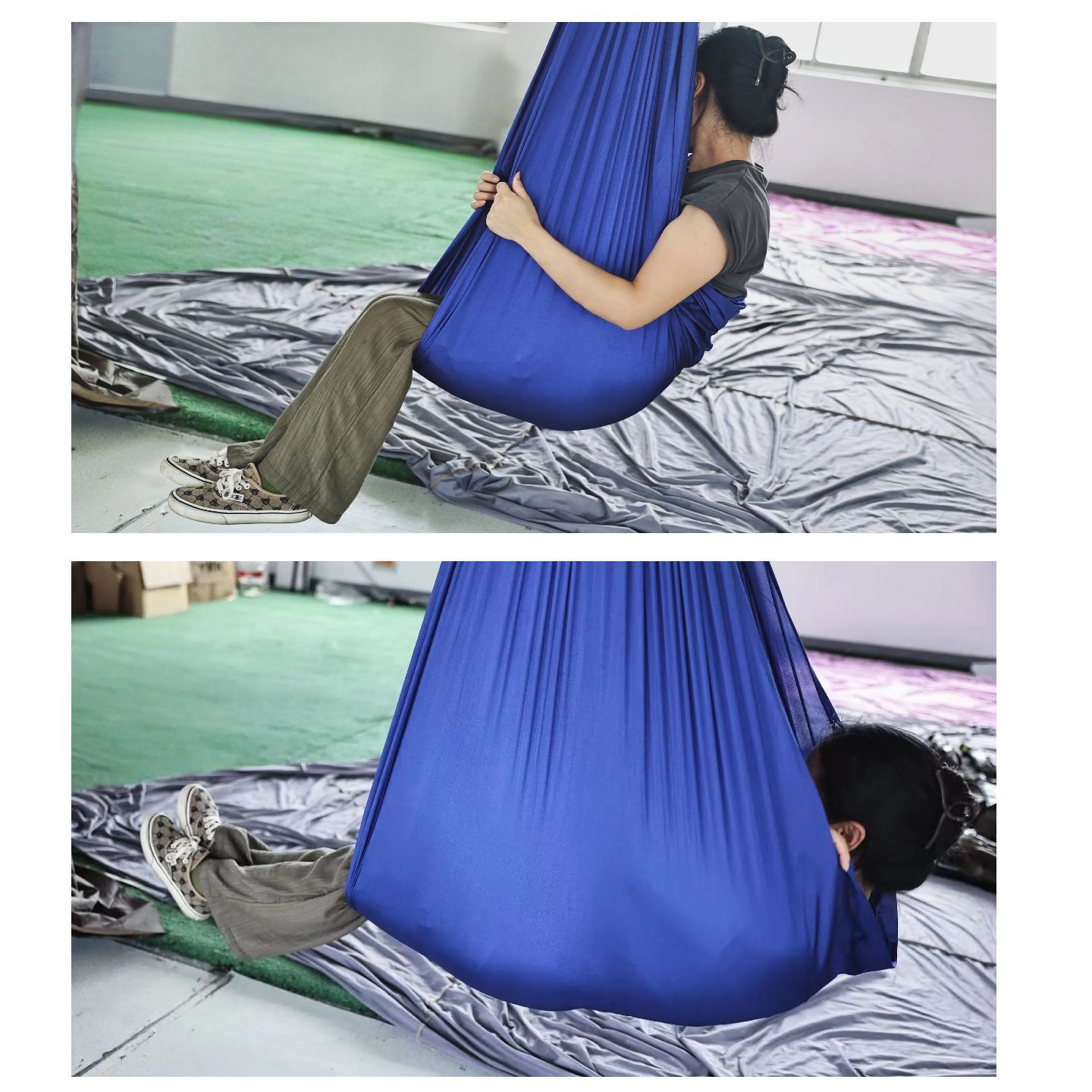 아마존의 인기 어린이 요가 해먹 감각 스윙 실내 및 실외 교수형 의자 더블 레이어 나일론 요가 스트레치 해먹