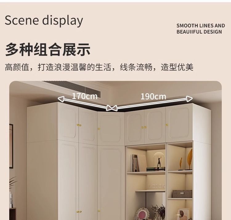 현대적인 미니멀리스트 홈 침실 작은 아파트 프렌치 옷장 L자형 코너 옷장 경제적인 캐비닛 완성된 옷장스토어 가기