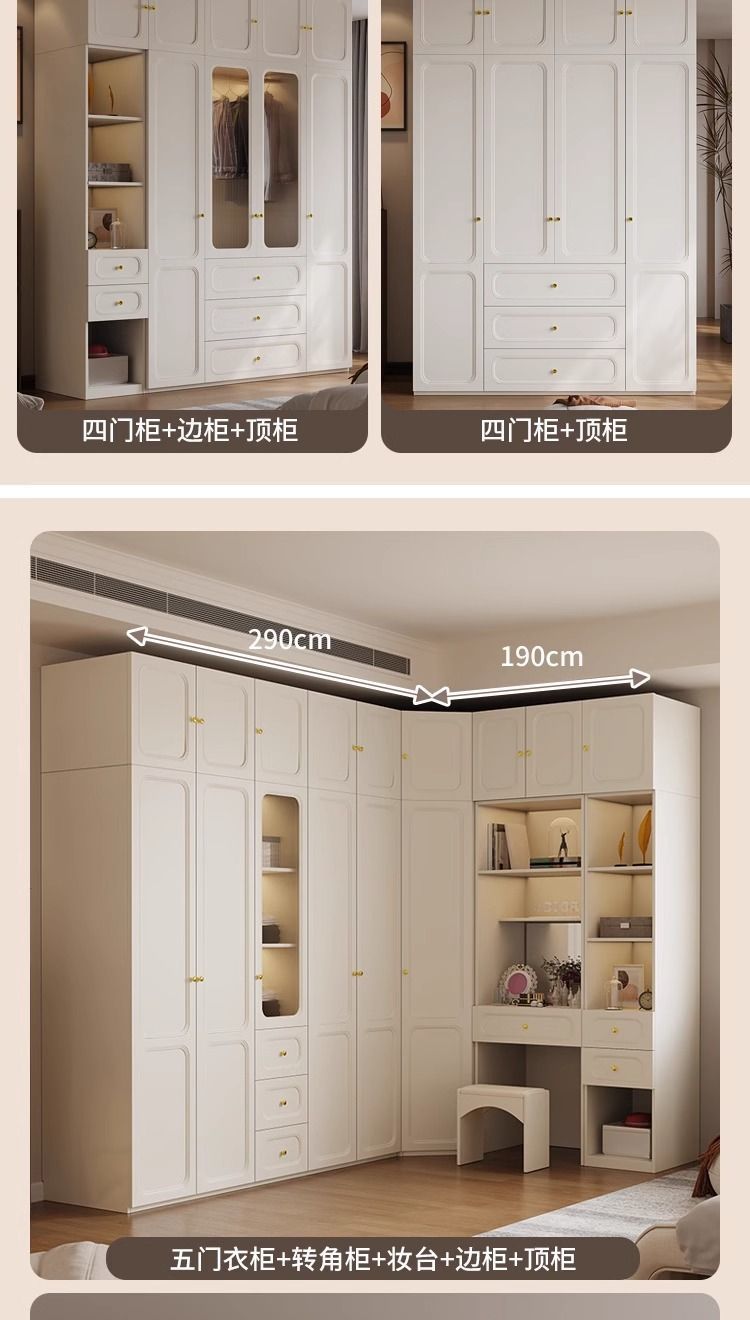 현대적인 미니멀리스트 홈 침실 작은 아파트 프렌치 옷장 L자형 코너 옷장 경제적인 캐비닛 완성된 옷장