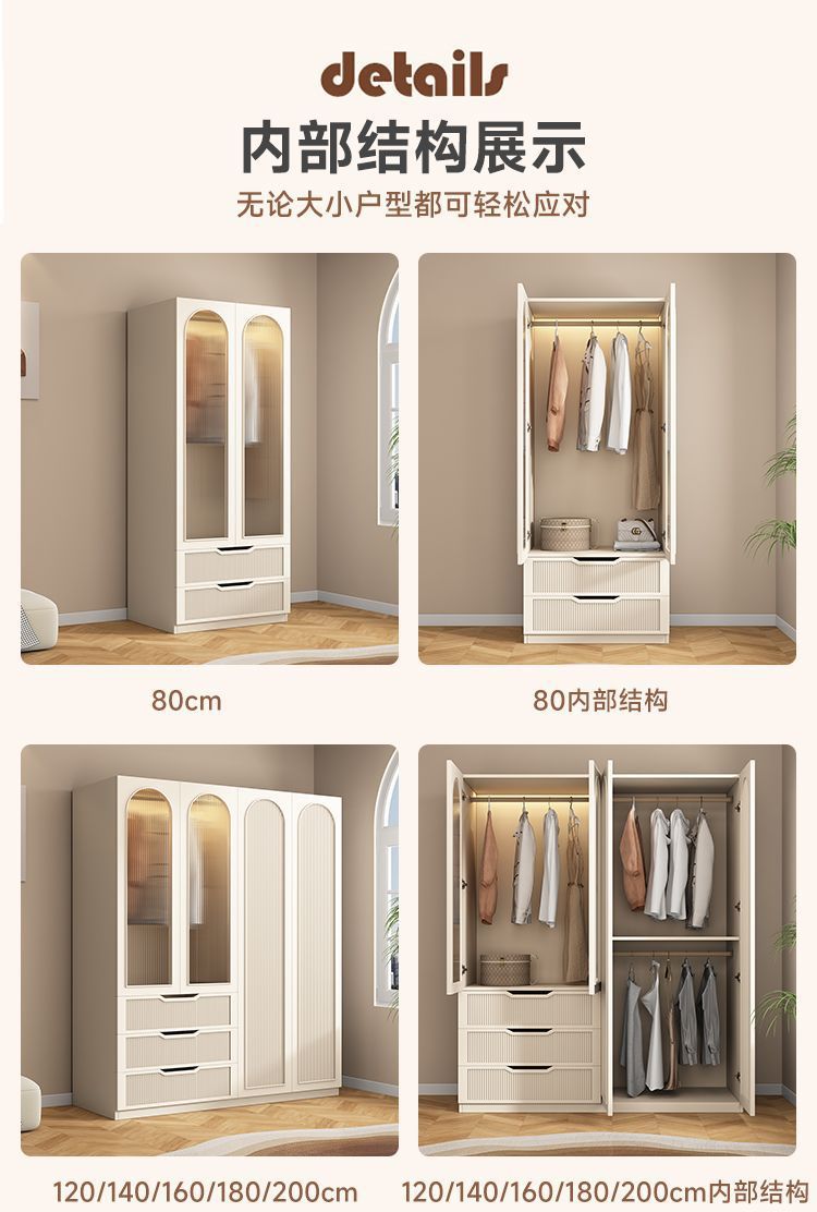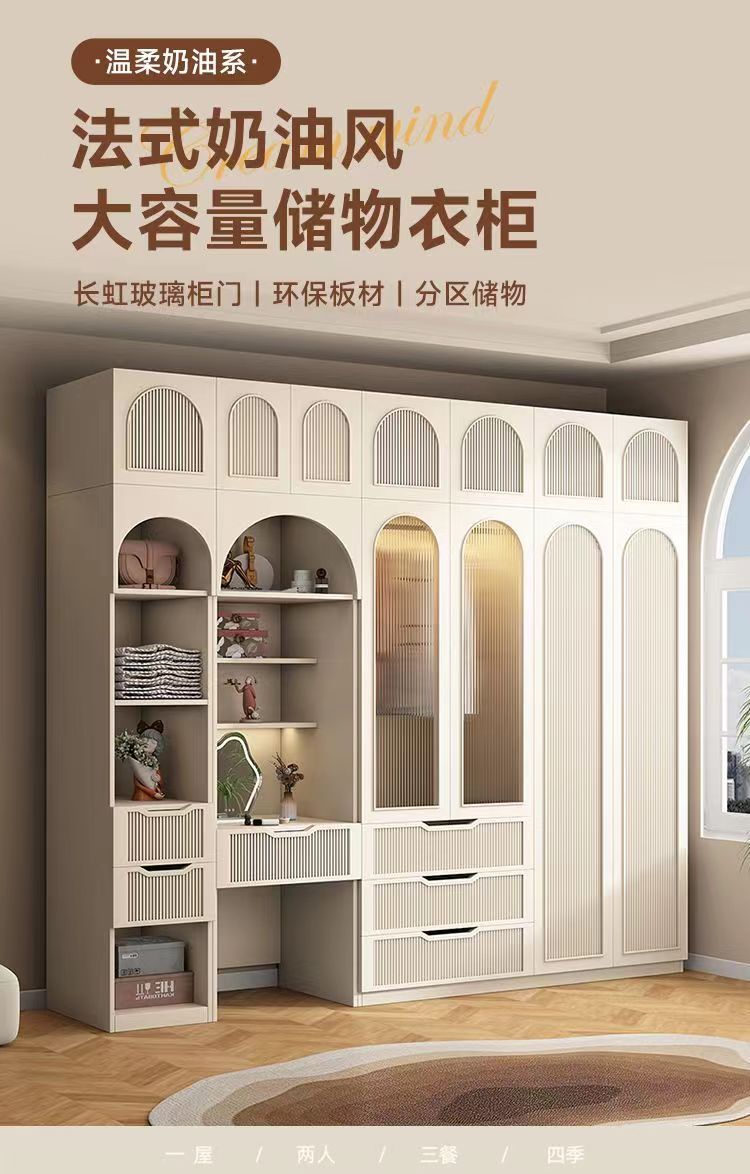 현대적인 미니멀리스트 홈 침실 프렌치 크림 스타일 옷장 작은 아파트 슬라이딩 도어 보관 캐비닛 하이 엔드 완제품 옷장