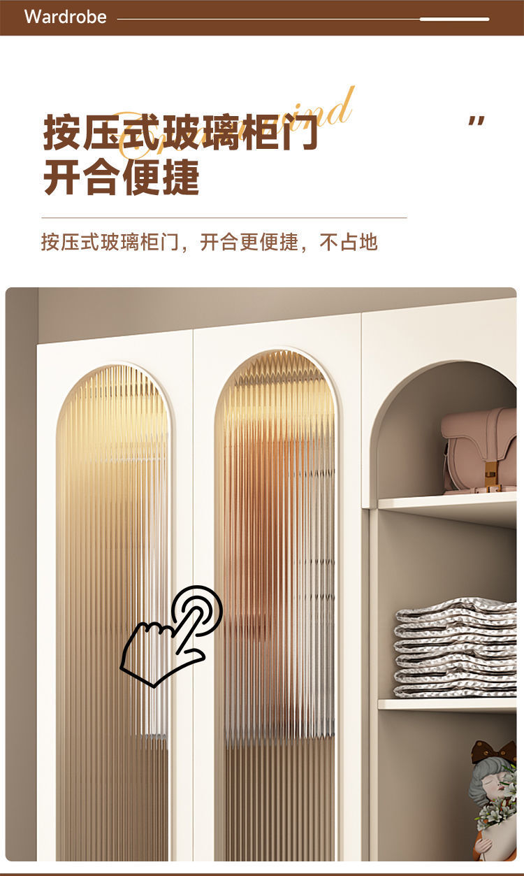 현대적인 미니멀리스트 홈 침실 프렌치 크림 스타일 옷장 작은 아파트 슬라이딩 도어 보관 캐비닛 하이 엔드 완제품 옷장스토어 가기