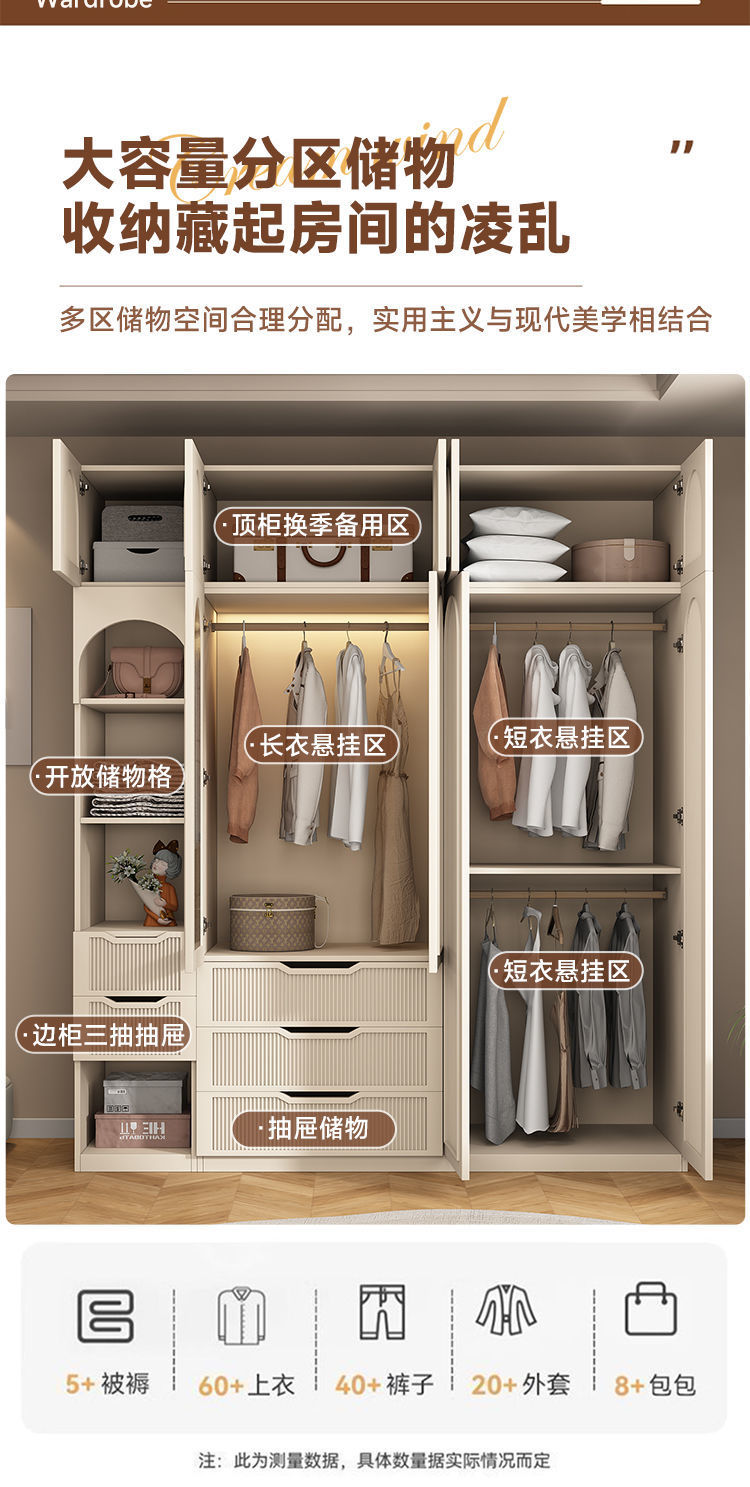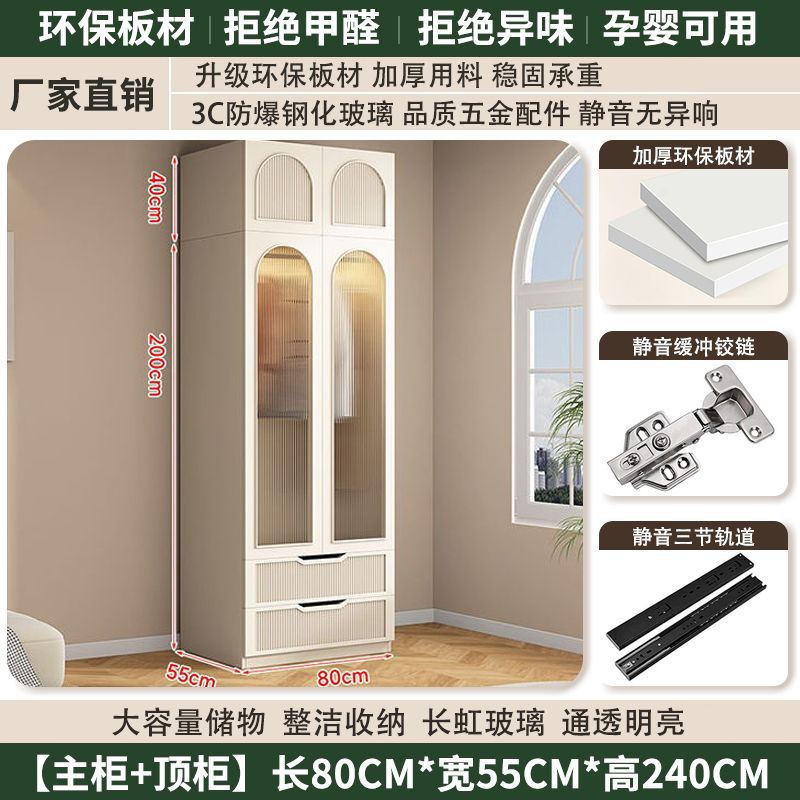 • 0.8m 크림색 옷장 + 사이드 캐비닛 + 상단 캐비닛丨조합 세트