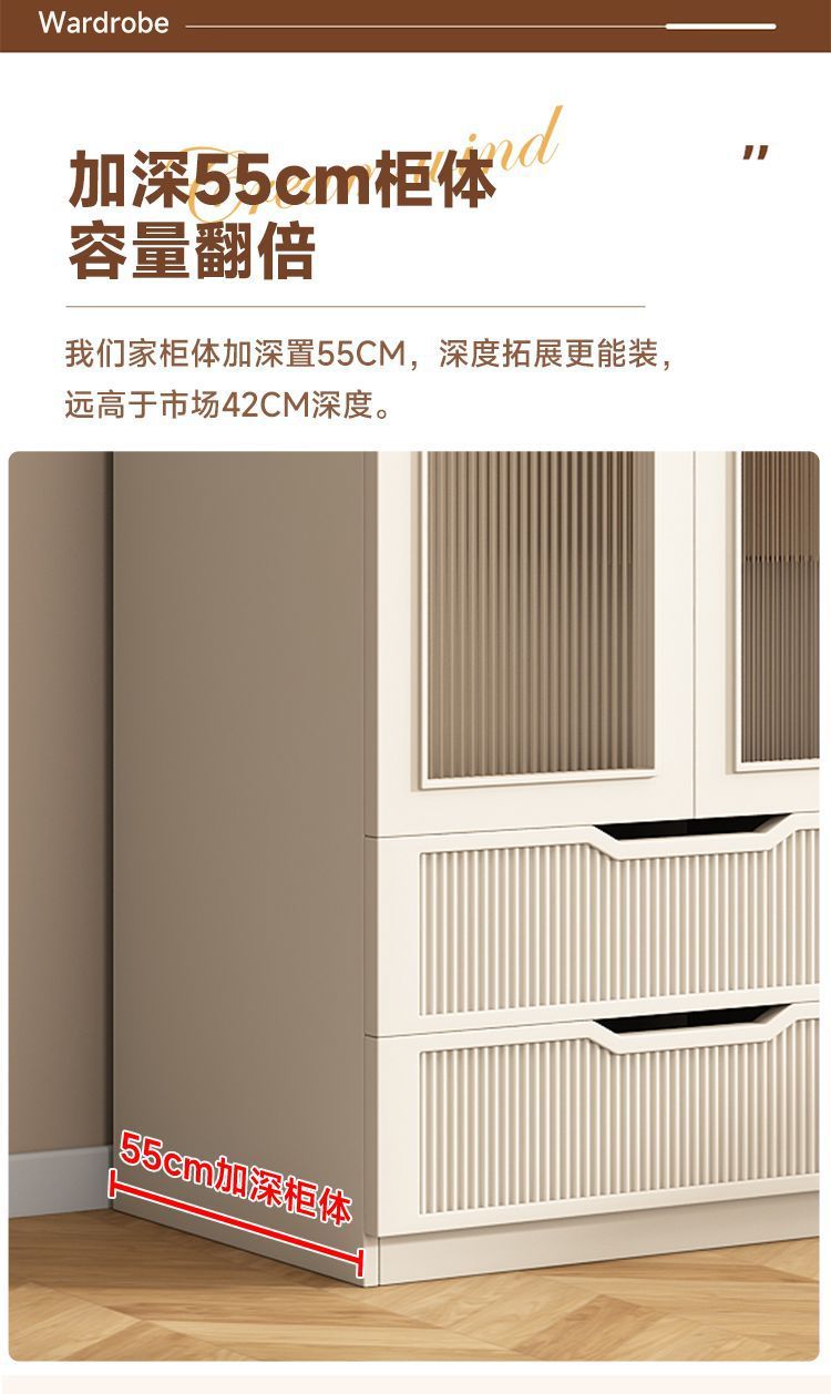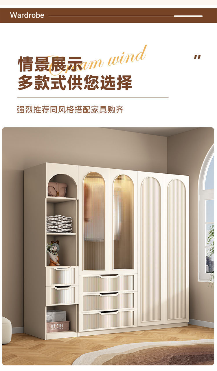 • 0.8m 크림 스타일의 옷장 + 사이드 캐비닛.