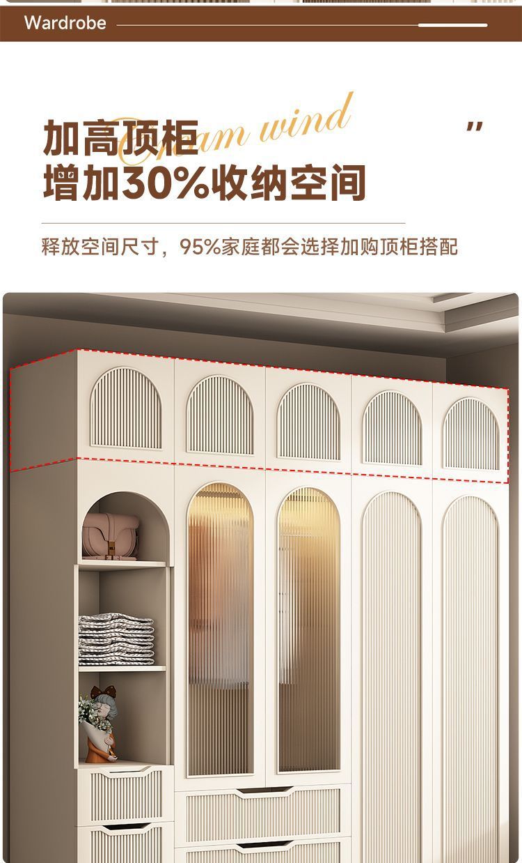 • 1.8m 크림 스타일 옷장 + 상단 캐비닛.