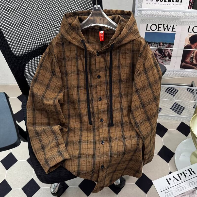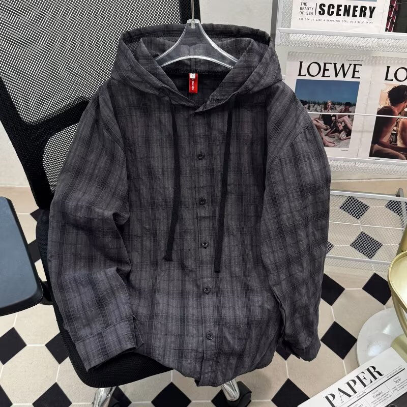 아메리칸 스타일 선 스크린 셔츠 남성 여름 긴 소매 남성 얇은 느슨한 캐주얼 커플 아메리칸 빈티지 아웃웨어