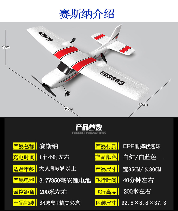 원격 제어 고정 날개 글라이더 세스나 민간 항공 낙하 방지 항공기 모델 초장기 내구성 초보자 초등학교 장난감 비행기스토어 가기