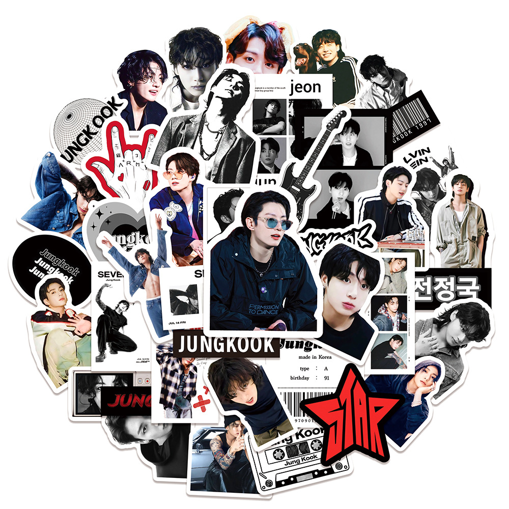50장의 정국 스티커 인스 스타일 흑백 라벨 노트북 스쿠터 물컵 방수 장식 핸드북 스티커스토어 가기