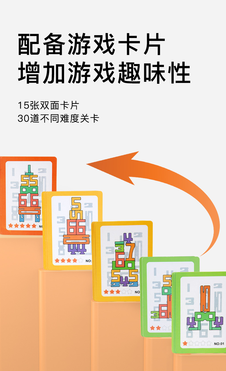 【产品备注】15张双面卡片+20颗数字积木