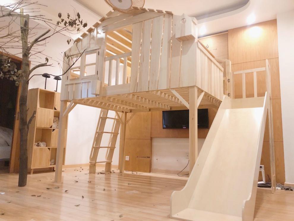 슬라이드가 있는 소년과 어린이용 트리하우스 원목 공주 침대, 어린이 비밀 기지 작은 집, 바로 사용할 수 있는 높은 침대