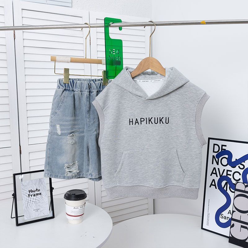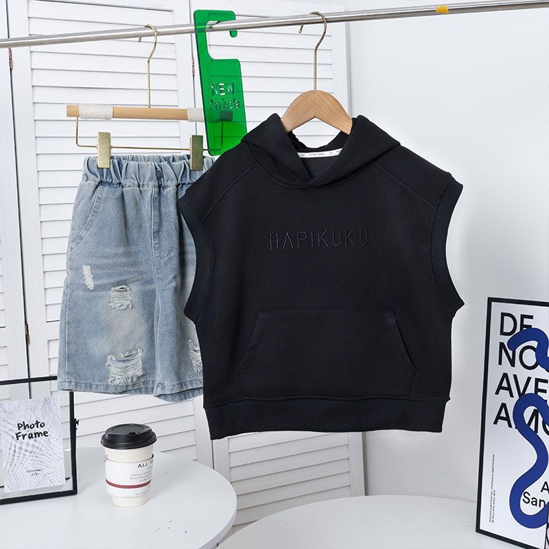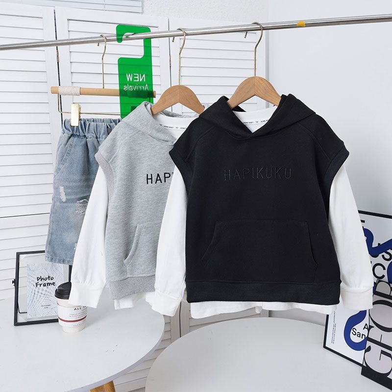 아동복 소년 봄 조끼 스웨트 셔츠 2025 새로운 봄, 가을 스타일 민소매 조끼 탑 소년 잘 생긴스토어 가기