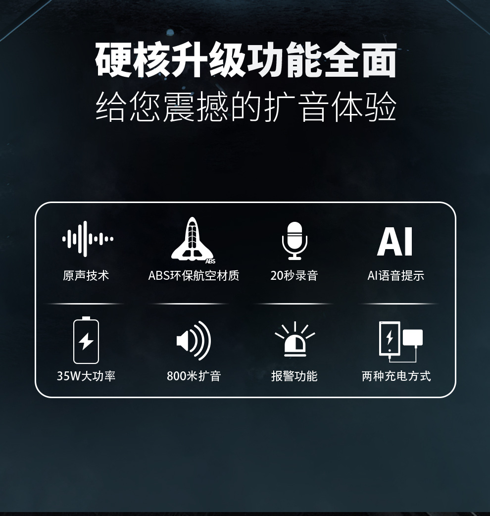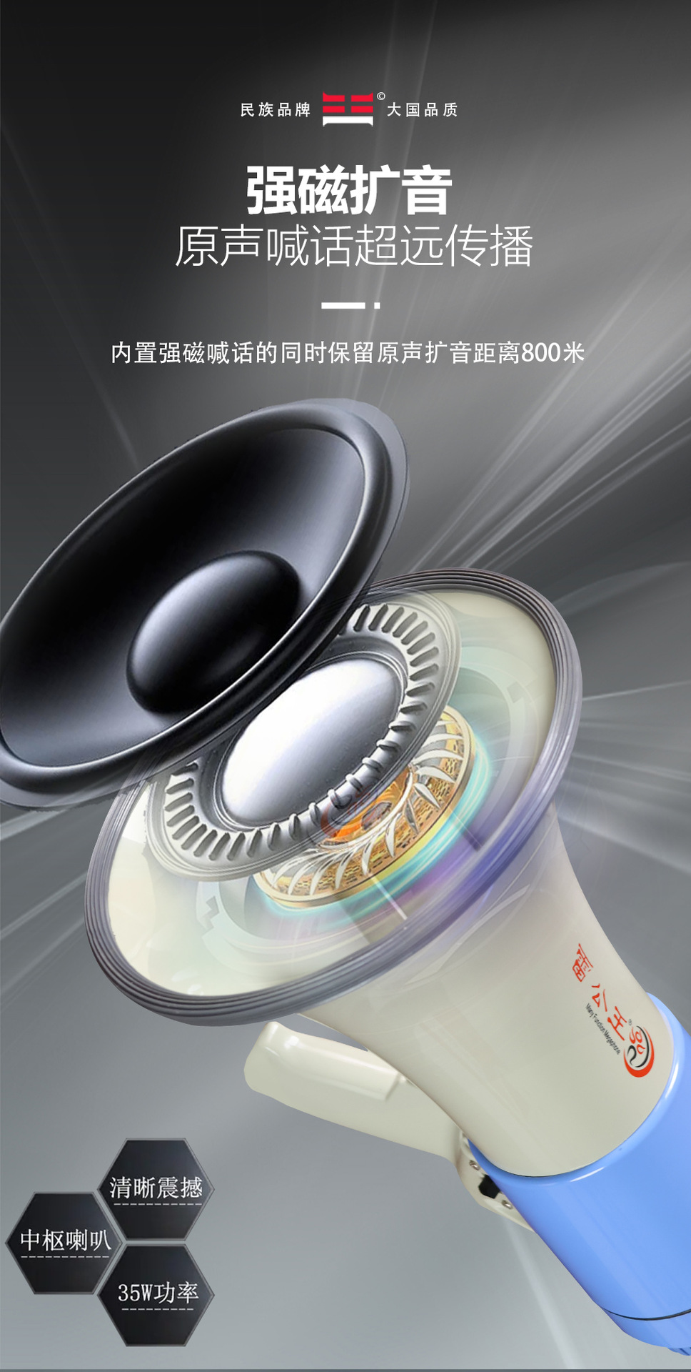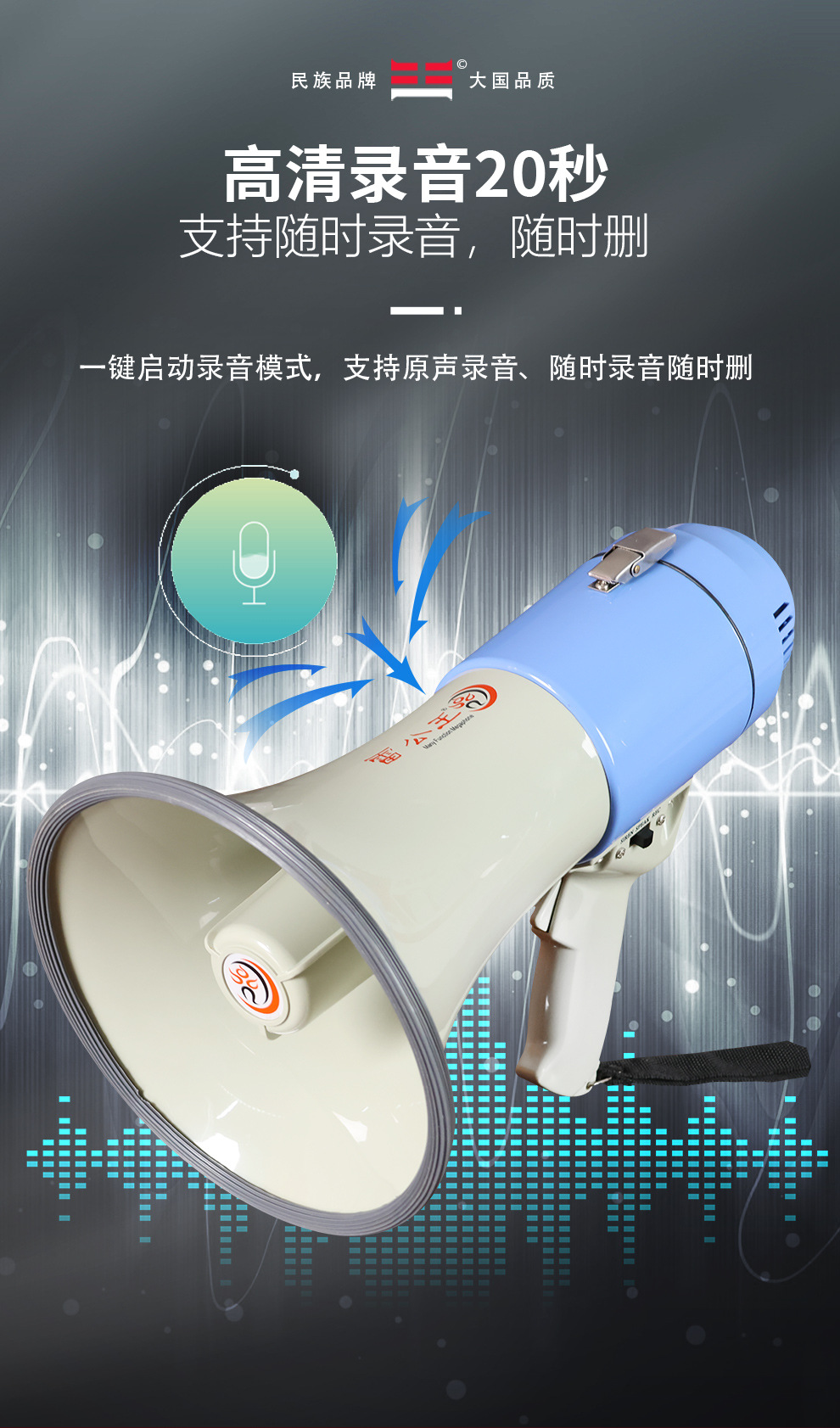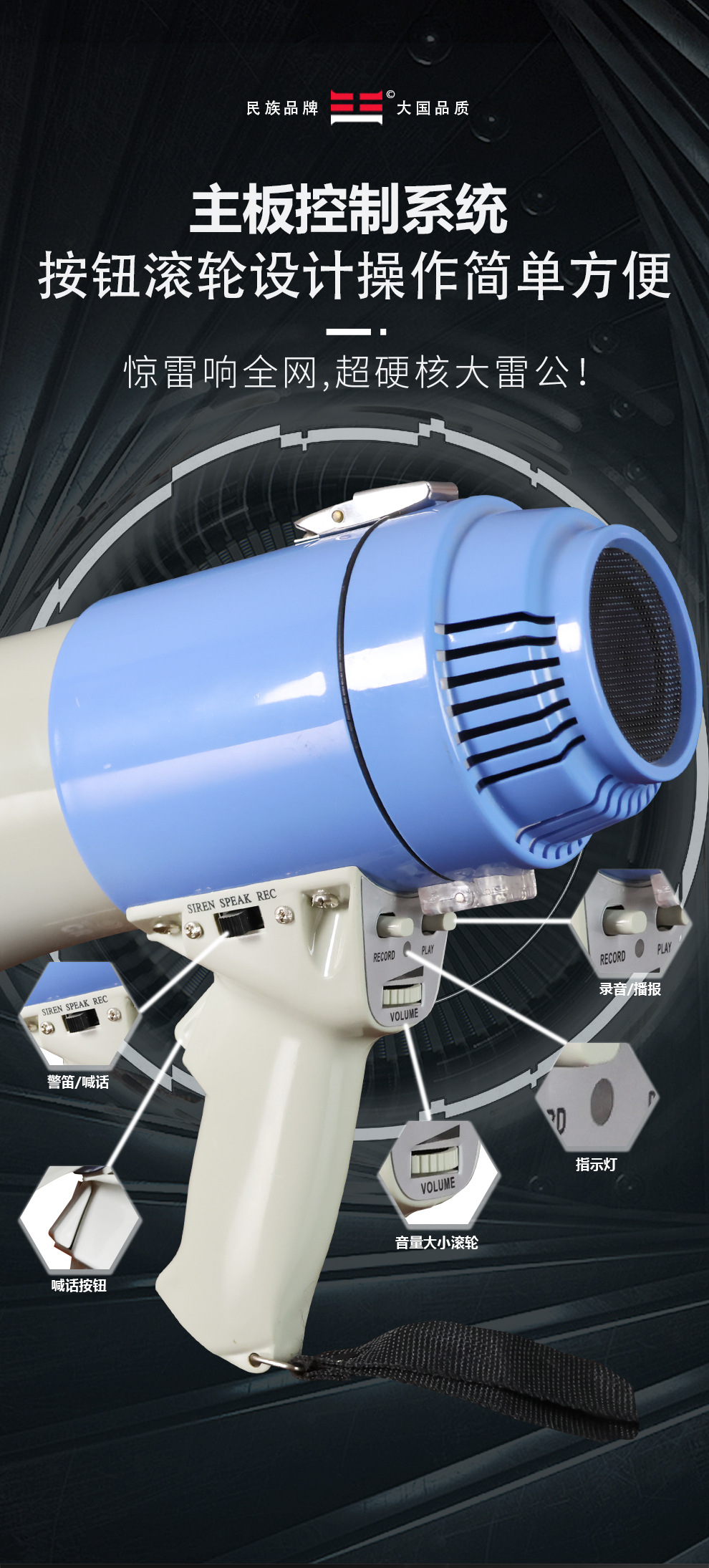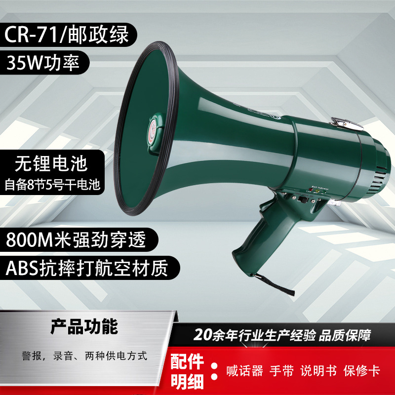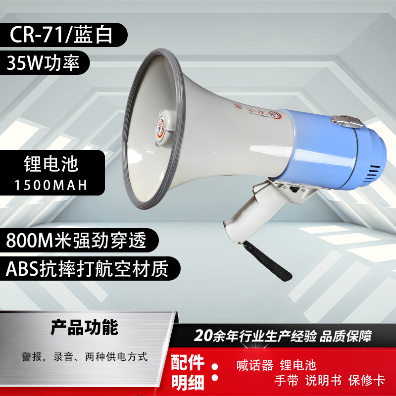 Thunder King CR-71 휴대용 메가폰 영어 버전 고출력 35W 녹음 경보 홍보 확성기 스피커