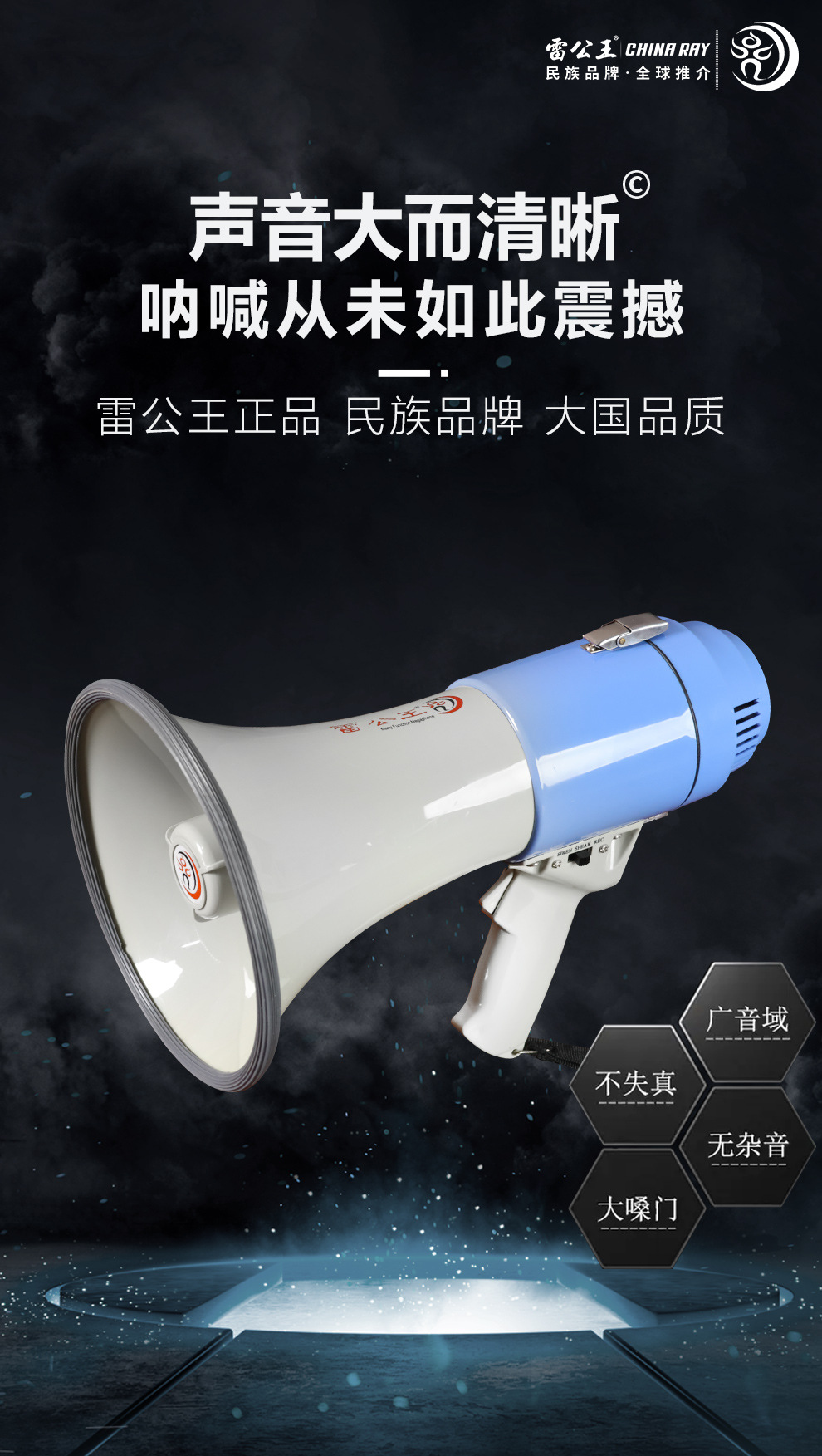 Thunder King CR-71 휴대용 메가폰 영어 버전 고출력 35W 녹음 경보 홍보 확성기 스피커스토어 가기