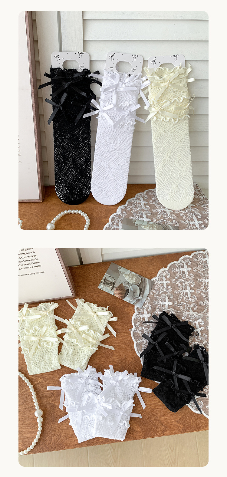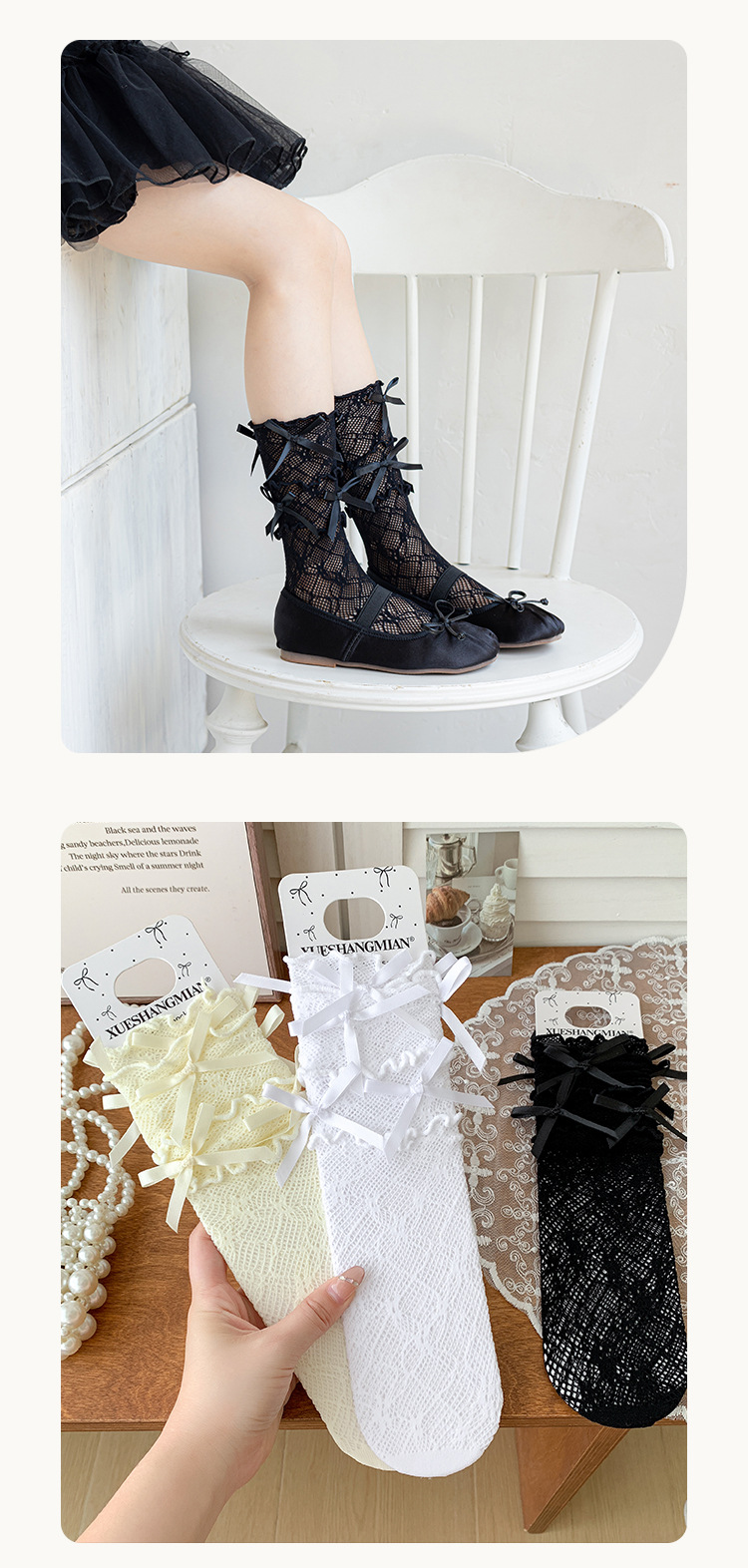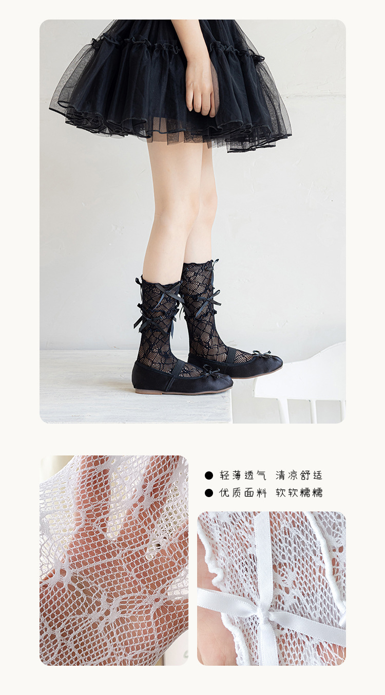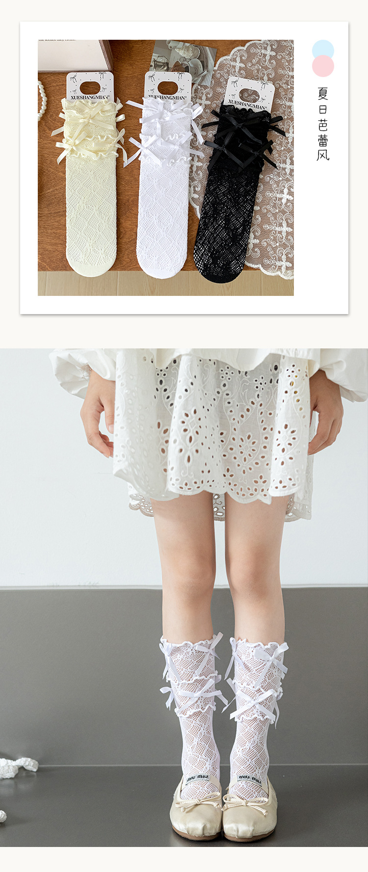 Misscucudog 소녀 양말 여름 얇은 활 공주 양말 한국 로리타 통기성 메쉬 양말