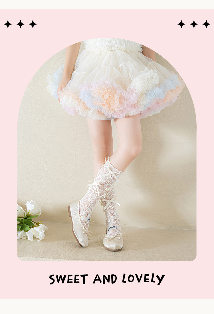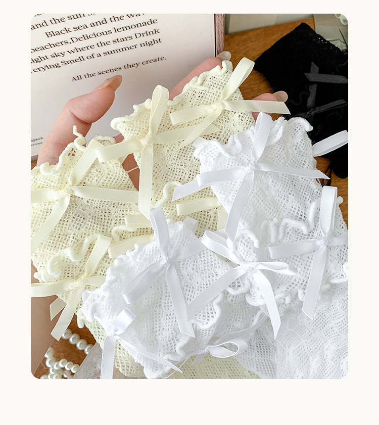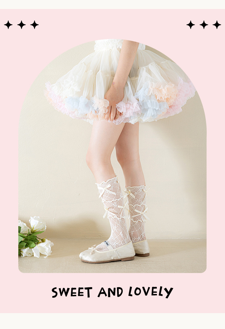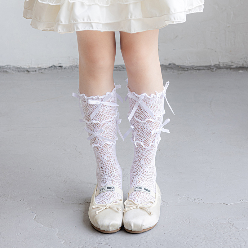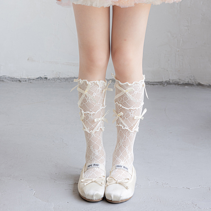 Misscucudog 소녀 양말 여름 얇은 활 공주 양말 한국 로리타 통기성 메쉬 양말