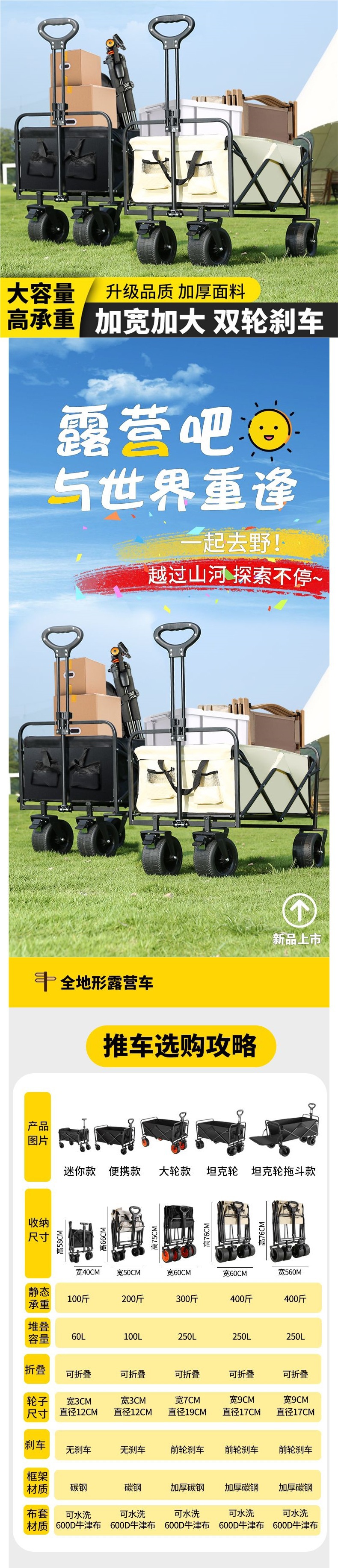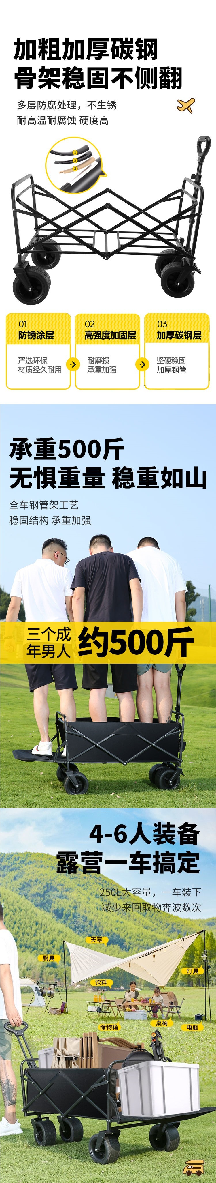 캠핑 카트 캠프 트레일러 접이식 야외 여행 쇼핑 핸드 푸시 피크닉 트롤리 캠핑 핸드 트롤리 공장스토어 가기