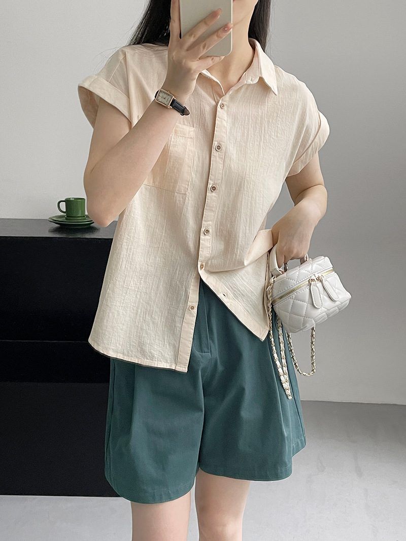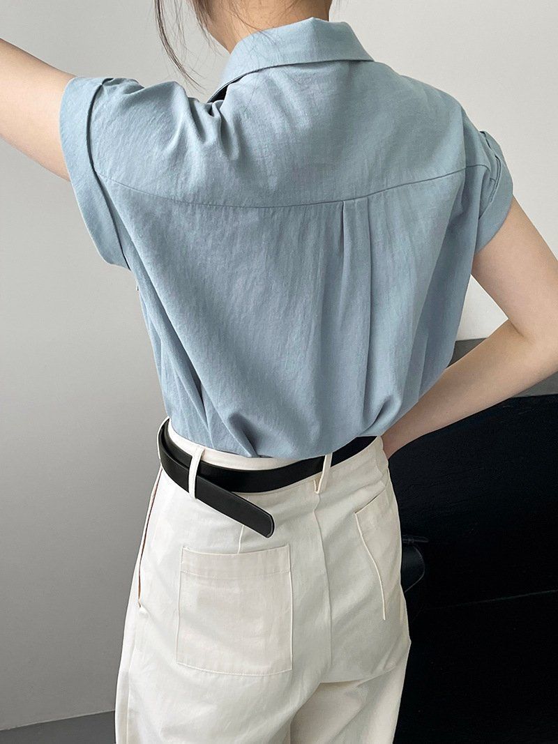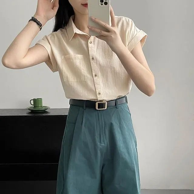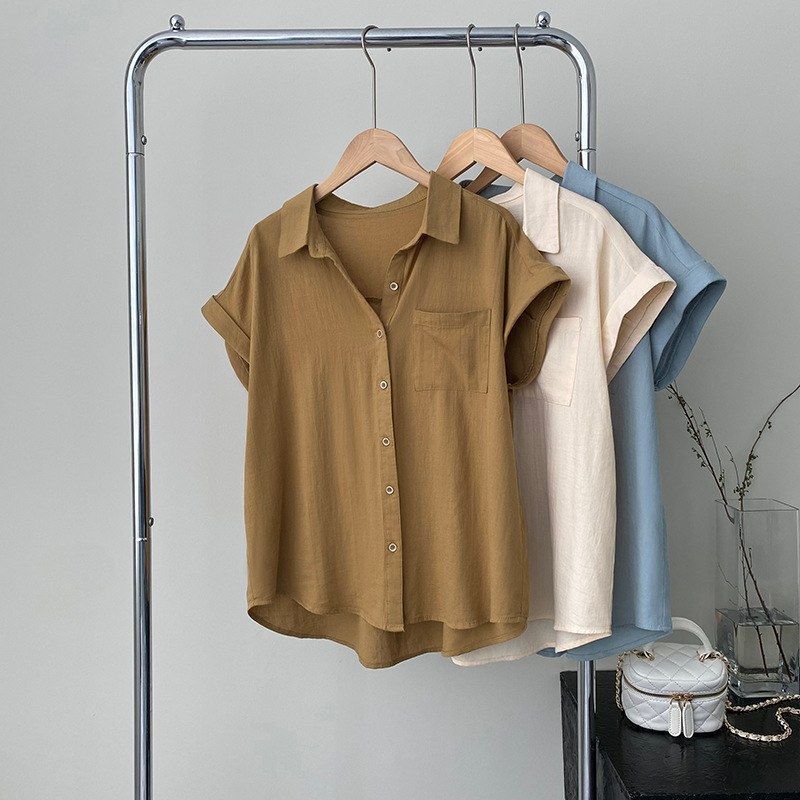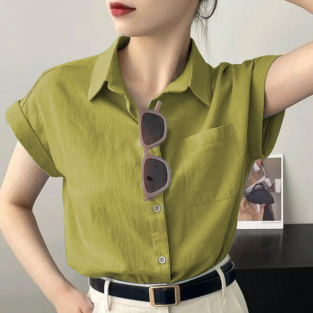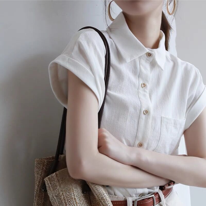 여름 여성용 컬링 반팔 셔츠, 고급 프렌치 탑, 루즈한 디자인, 니치 스몰 플라잉 슬리브 쉬폰 셔츠스토어 가기