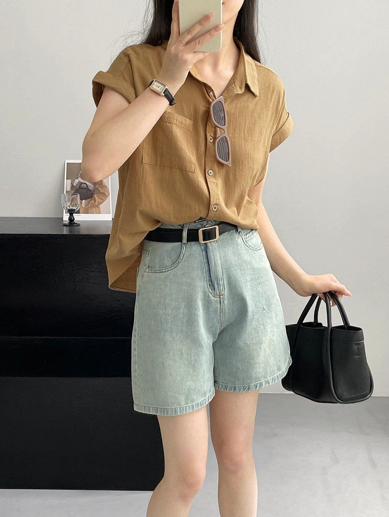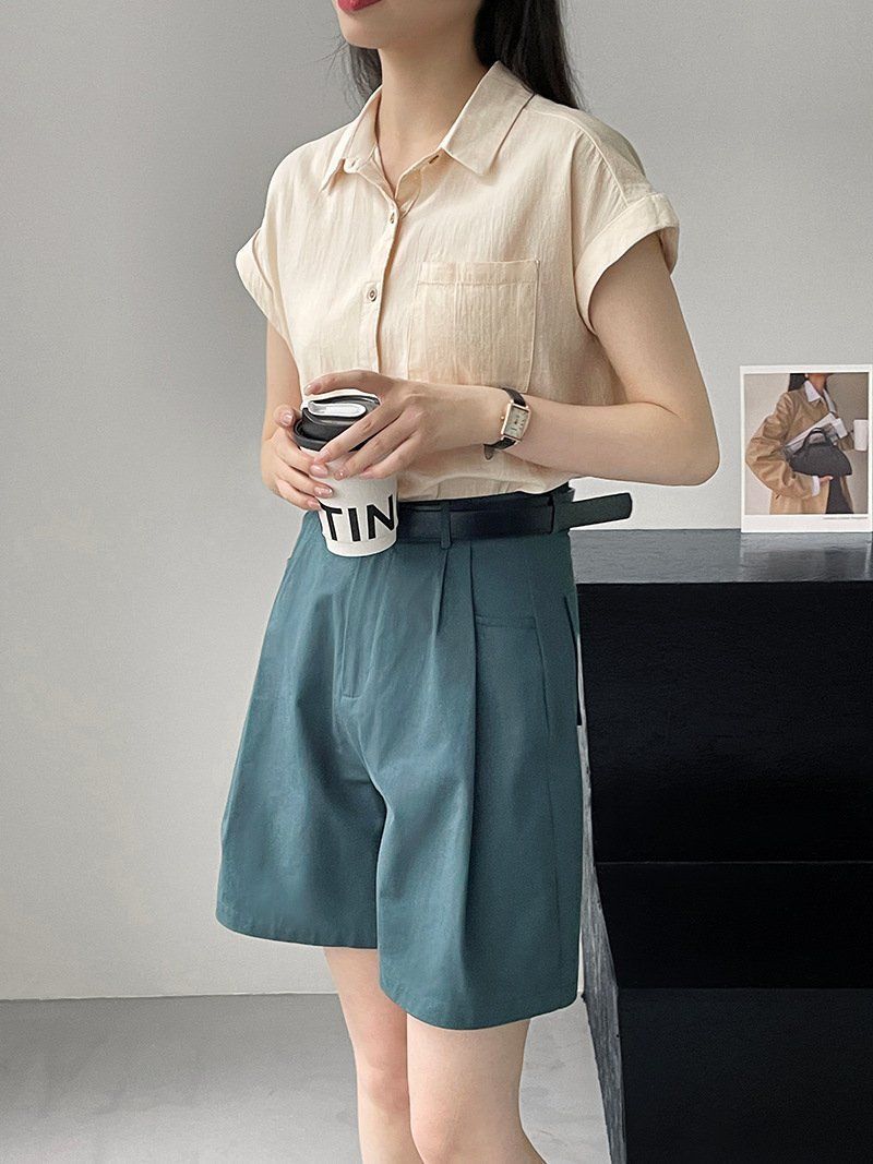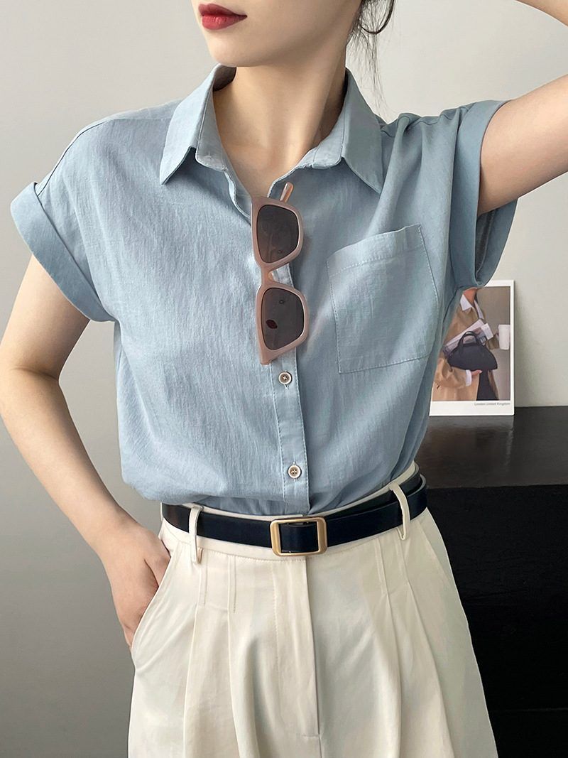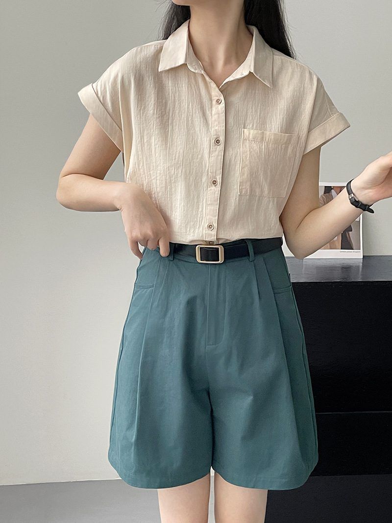 여름 여성용 컬링 반팔 셔츠, 고급 프렌치 탑, 루즈한 디자인, 니치 스몰 플라잉 슬리브 쉬폰 셔츠스토어 가기