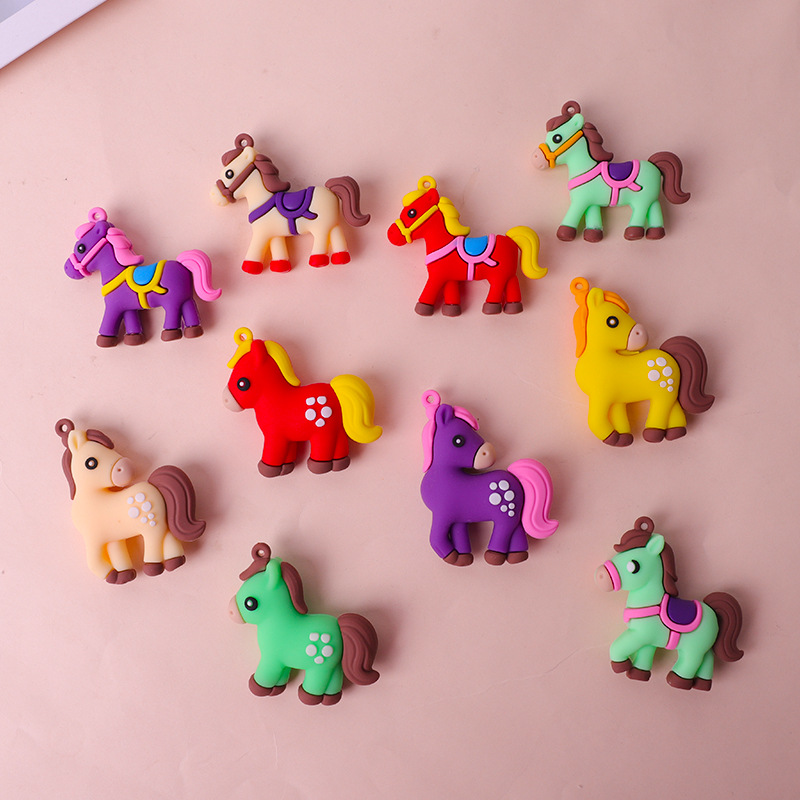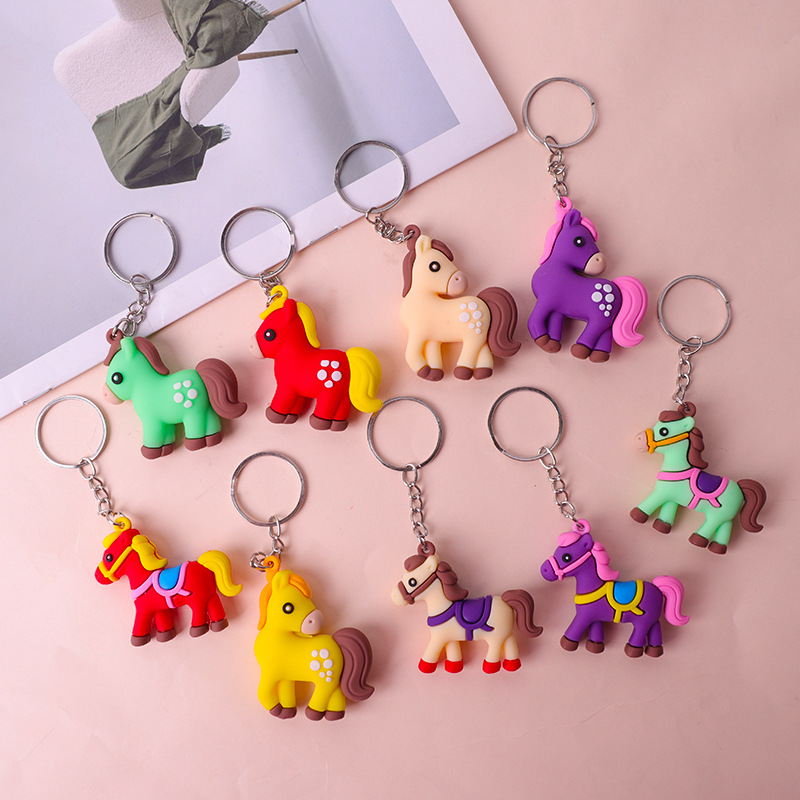 새해 말 키 체인 인형 펜던트 학교 가방 PVC 부드러운 고무 펜던트 블라인드 박스 인형 유니콘 조디악 말 인형스토어 가기