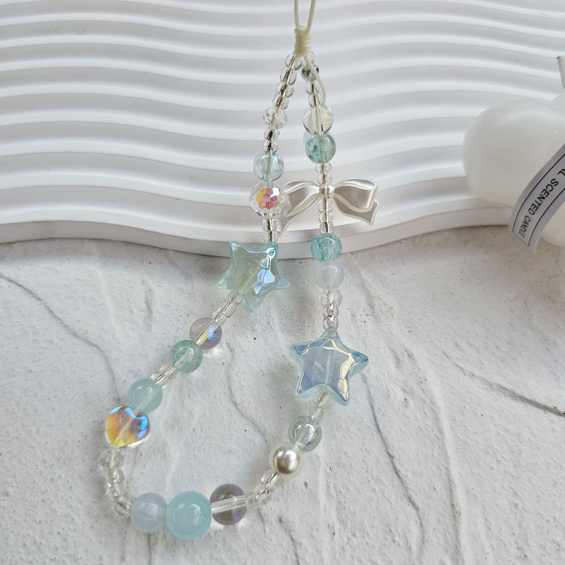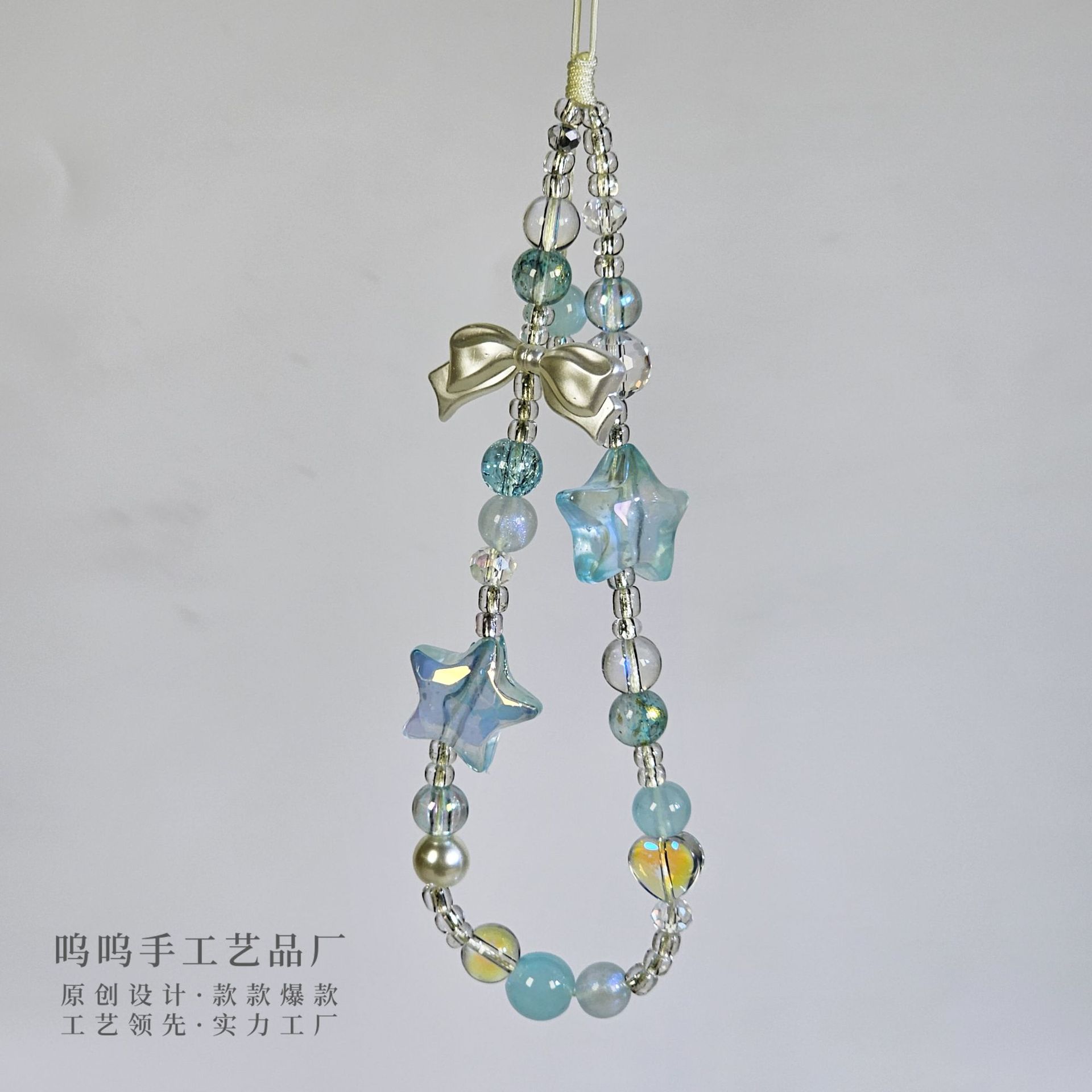 유럽과 미국의 인기 레이크 블루 스타 휴대폰 체인 틈새 ins 스타일 여름 신선한 ccd 카메라 로프 다용도 휴대폰 체인