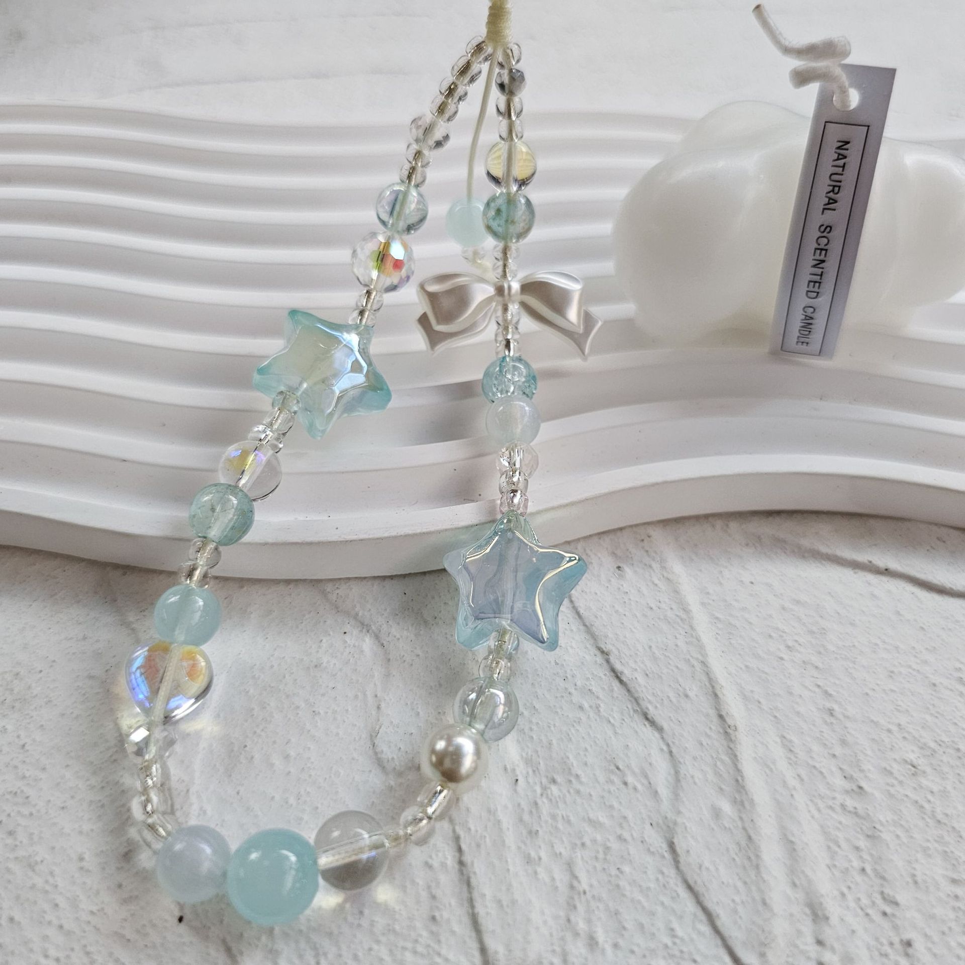 유럽과 미국의 인기 레이크 블루 스타 휴대폰 체인 틈새 ins 스타일 여름 신선한 ccd 카메라 로프 다용도 휴대폰 체인스토어 가기
