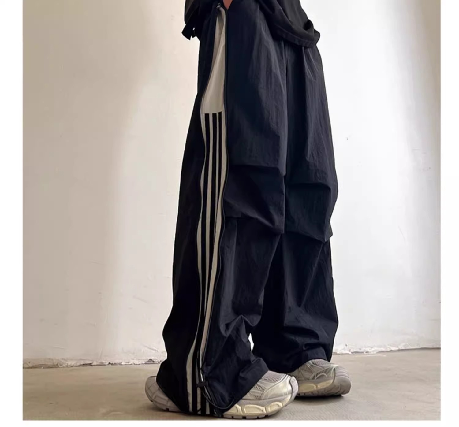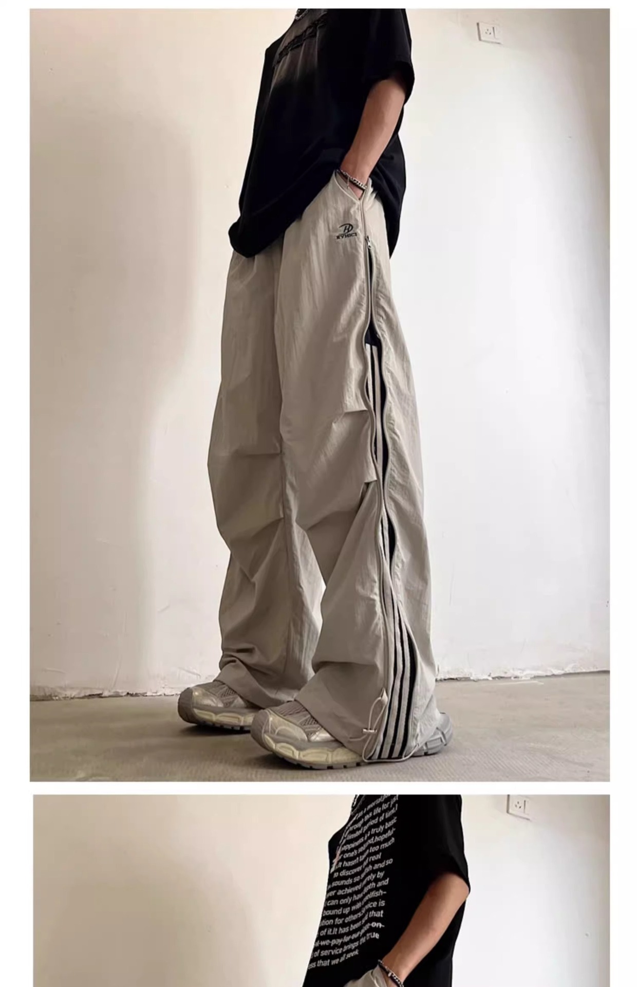 아메리칸 다용도 낙하산 군인 캐주얼 바지 남성 여름 야외 하이 스트리트 스트라이프 충전 바지 트렌디 브랜드 속건성 와이드 레그 바지스토어 가기